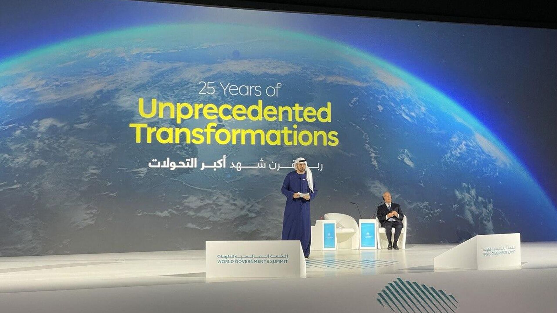 وشهدت الجلسة الافتتاحية حضور محمد القرقاوي، وزير شؤون مجلس الوزراء في دولة الإمارات العربية المتحدة، رئيس القمة العالمية للحكومات، وعمر سلطان العلماء، وزير الدولة للذكاء الاصطناعي والاقتصاد الرقمي وتطبيقات العمل عن بُعد، نائب رئيس القمة.