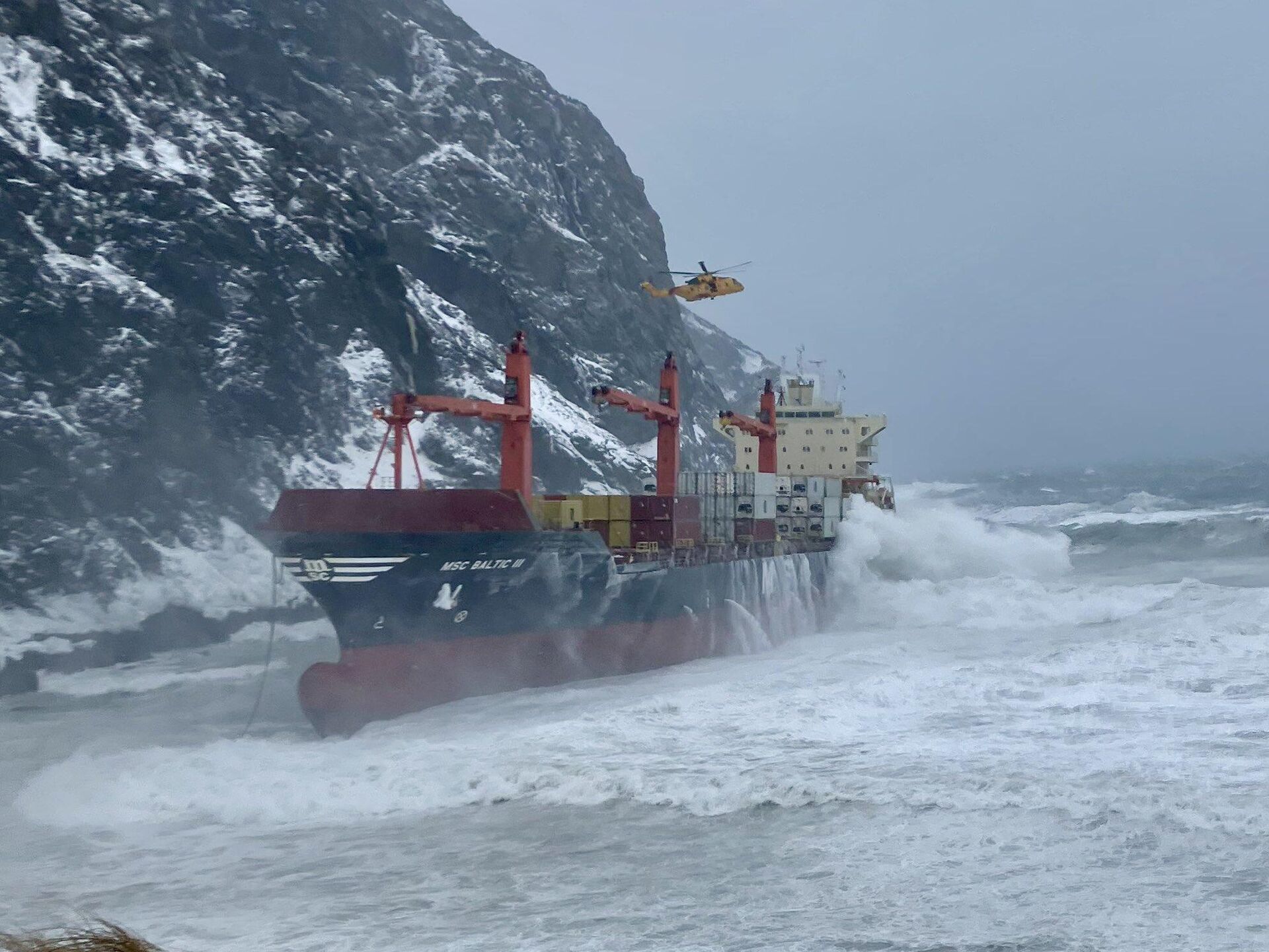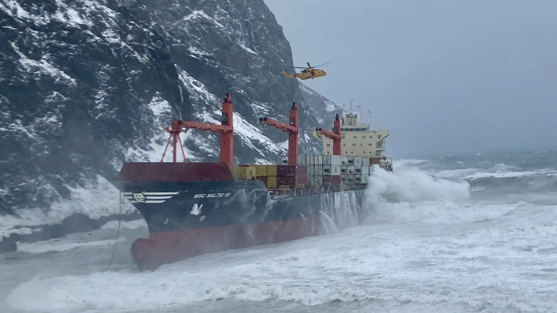 صباح يوم السبت، في الخامس عشر من فبراير/شباط، جنحت سفينة الحاويات "MSC BALTIC III" تحمل العلم الليبيري، بعد انقطاع التيار الكهربائي في ظل ظروف جوية قاسية.