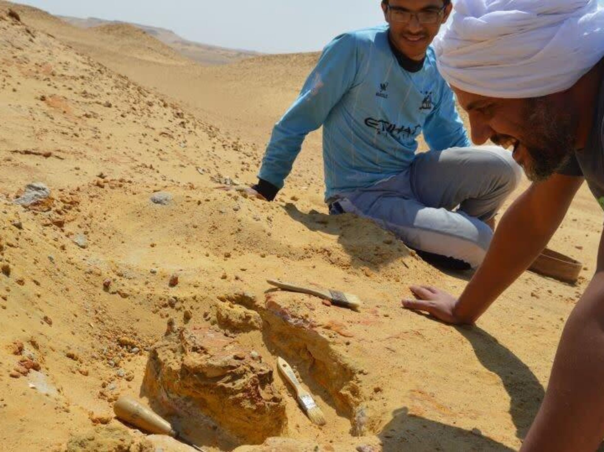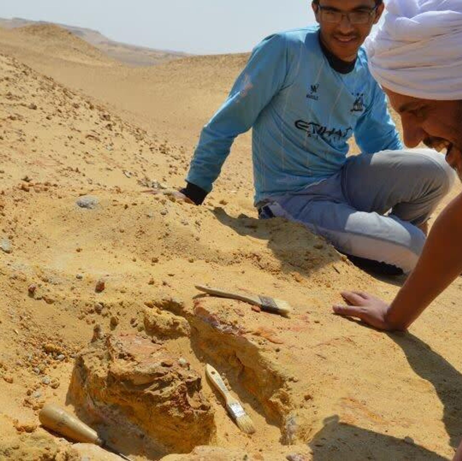 في رمال الصحراء في الفيوم في مصر، فقد رصد أحد أعضاء الفريق أسناناً كبيرة بارزة من الأرض، ما أدى إلى ما وصفته المؤلفة الرئيسية شروق الأشقر بأنه "حلم لأي عالم حفريات فقارية".