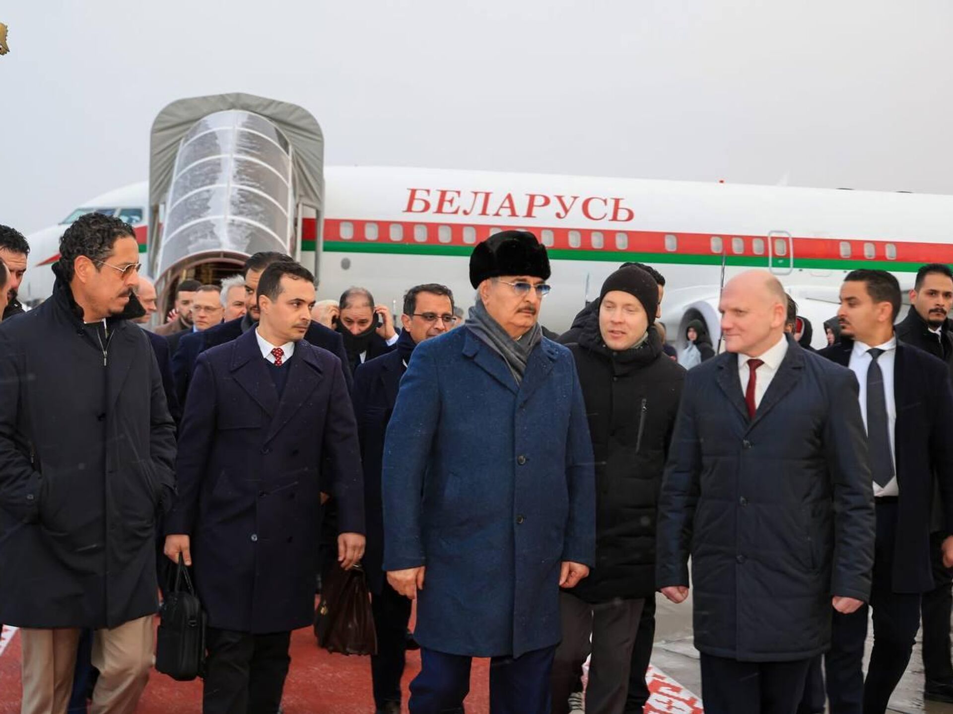 وصل القائد العام للجيش الوطني الليبي المشير خليفة حفتر، أمس الاثنين، إلى بيلاروسيا، في زيارة لم يُعلن عنها مسبقًا، دون الكشف عن تفاصيل جدول أعمالها حتى الآن.
