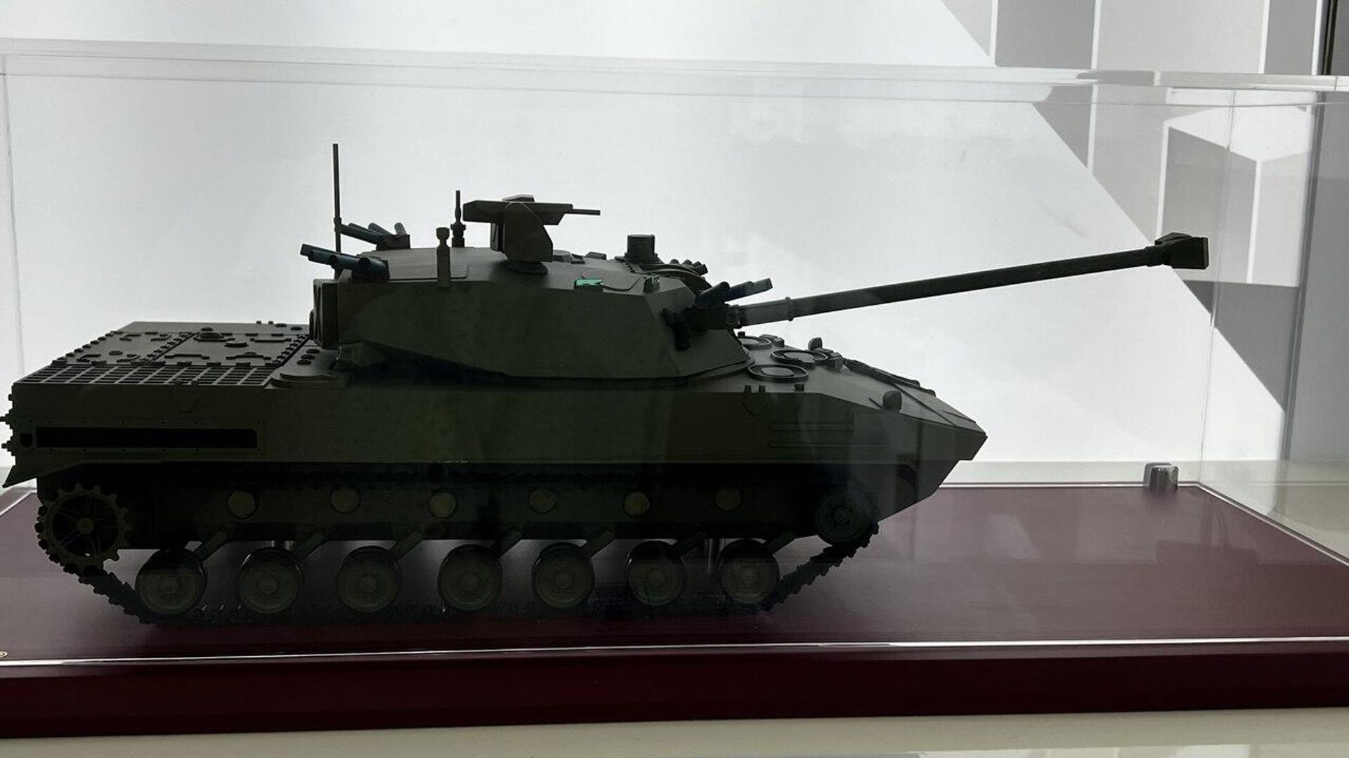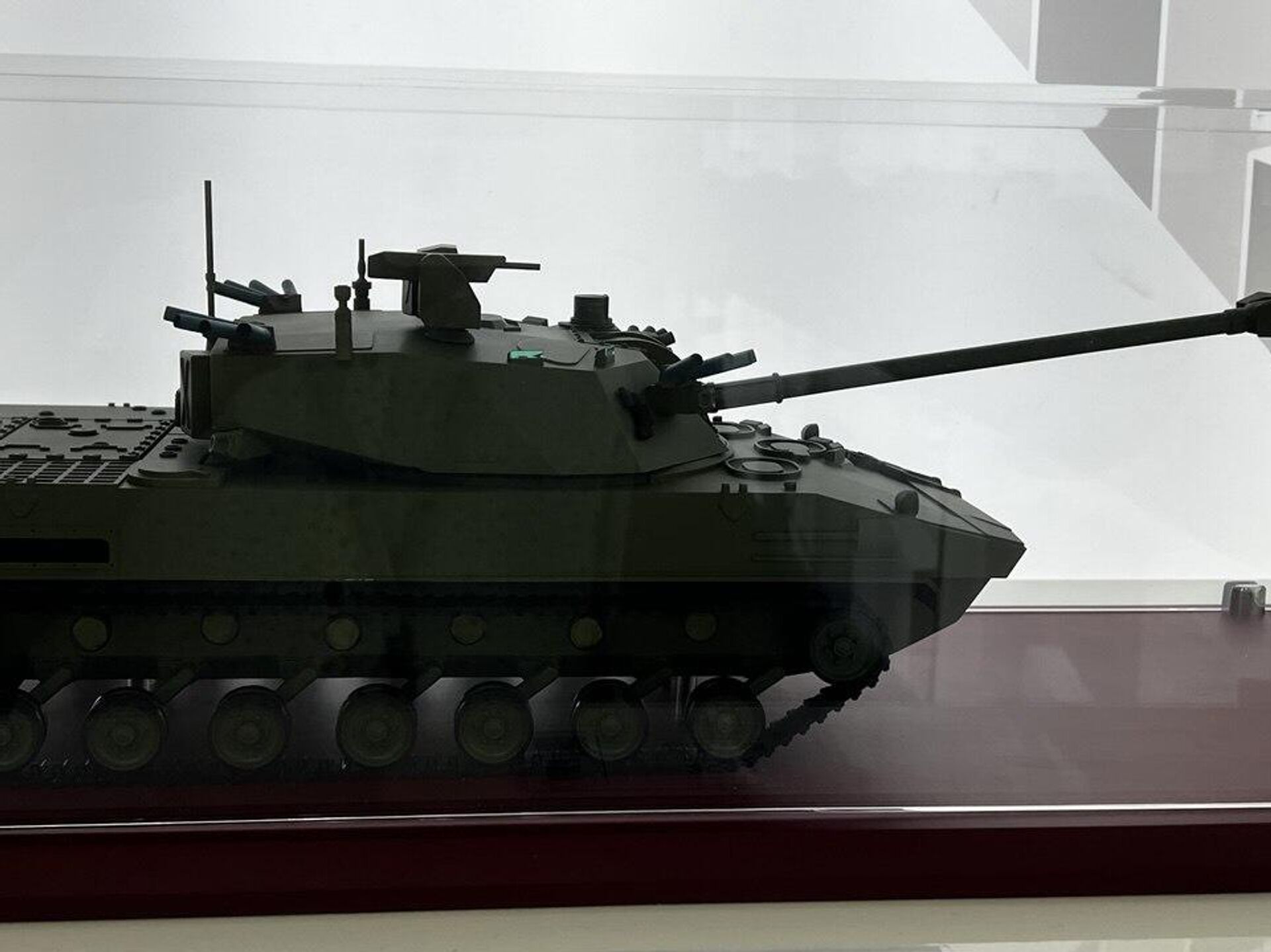 ضمن جناح الأسلحة الروسية الحديثة والمتطورة في معرض آيدكس أبو ظبي، يعرض مدفع "لوتس" ذاتي الحركة.