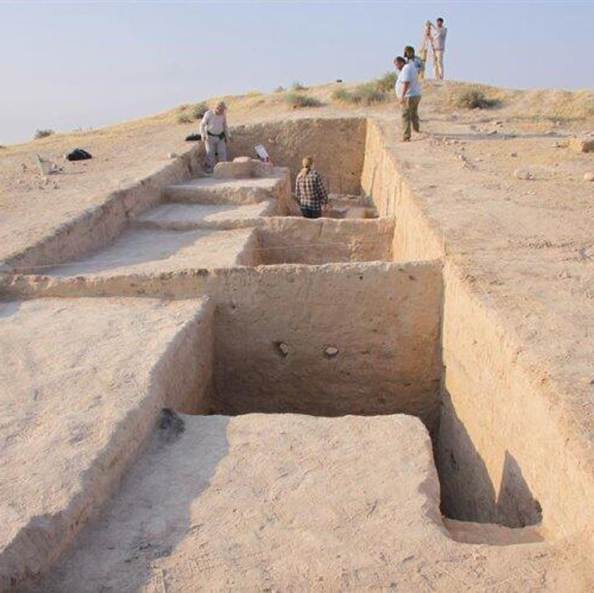 يقول أميروف: "لقد واجهتنا مهمة إجراء البحوث الطبقية وتحديد سمك الطبقة الثقافية. وللقيام بذلك، كان من الضروري العثور على قسم غير تالف من التل. وتبين أن هذا هو المنحدر الشمالي، الذي وضعنا عليه خندقًا مكونًا من أربعة مربعات، كل منها مساحة 4 × 4 أمتار. وبسبب الوقت المحدود للعمل، تم تقليص مساحة كل مربع إلى 4 × 2 متر، وتم ضغط أدنى الحفريات إلى 2 × 2 متر، حيث حاولوا النزول إلى أعمق ما يمكن لفهم سمك الطبقة".
