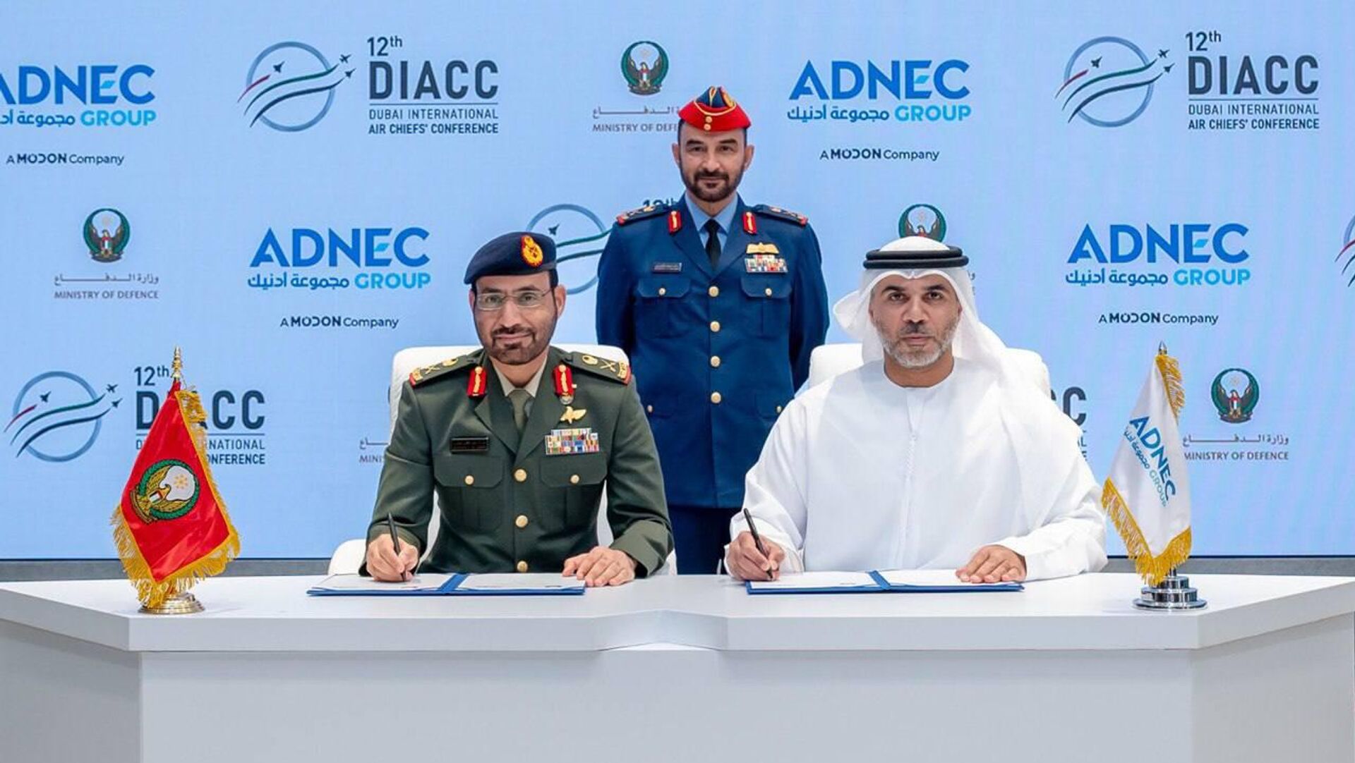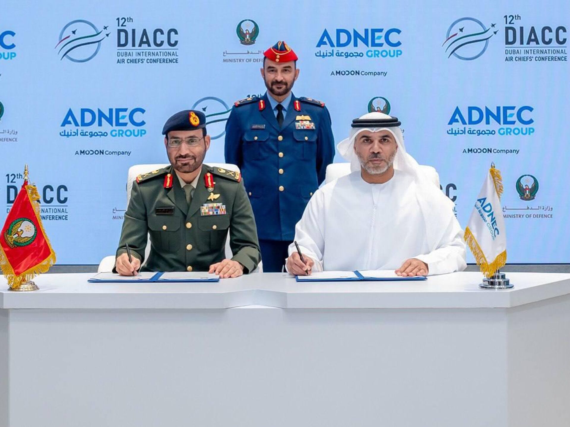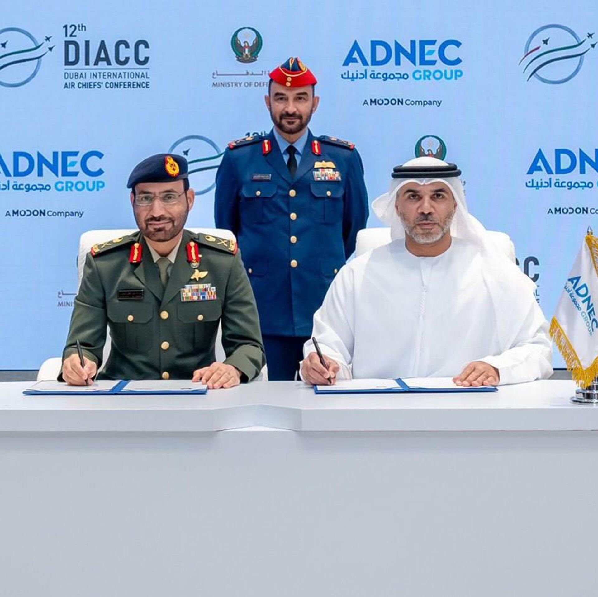 وجاء الإعلان عن هذه الشراكة خلال حفل رسمي بحضور اللواء الركن راشد محمد الشامسي، قائد القوات الجوية والدفاع الجوي الإماراتي، حيث وقع الاتفاقية كل من اللواء الركن مبارك سعيد غافان الجابري، الوكيل المساعد للإسناد والصناعات الدفاعية في وزارة الدفاع، وحميد مطر الظاهري، العضو المنتدب والرئيس التنفيذي لمجموعة "أدنيك"، بحضور نخبة من القادة والمسؤولين من الجانبين.