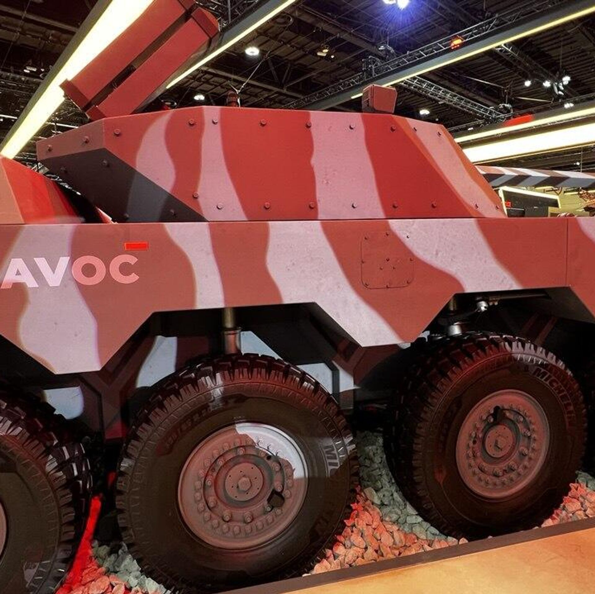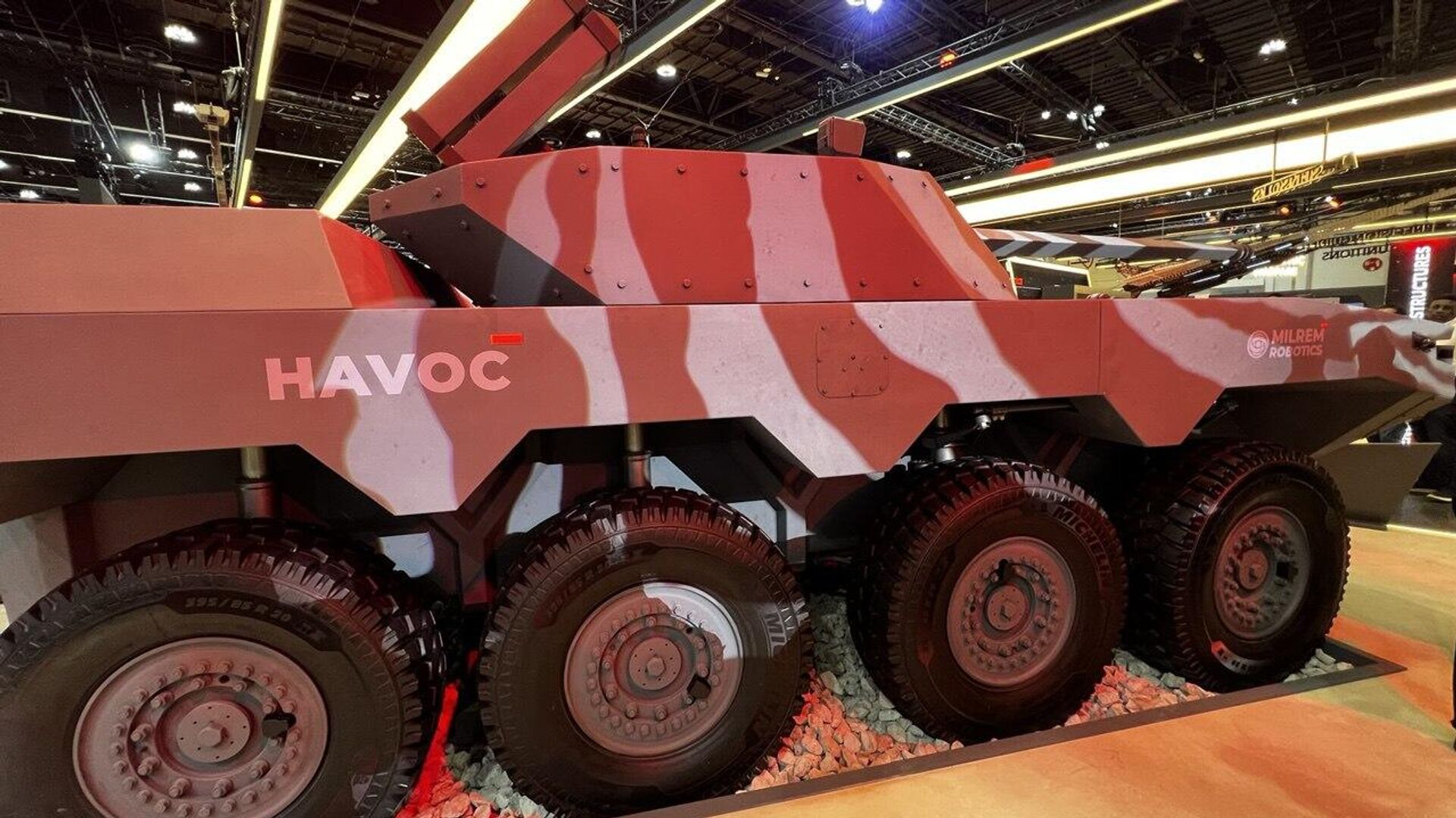 وتمثل مركبة "هافوك 8×8" القتالية الروبوتية تقدما هائلا في تكنولوجيا المركبات البرية الهجينة غير المأهولة، وتعمل المركبة المزودة بمحرك كهربائي هجين، بصمت تقريبا ما يعزز تخفيها وقدرتها على التكيف.
