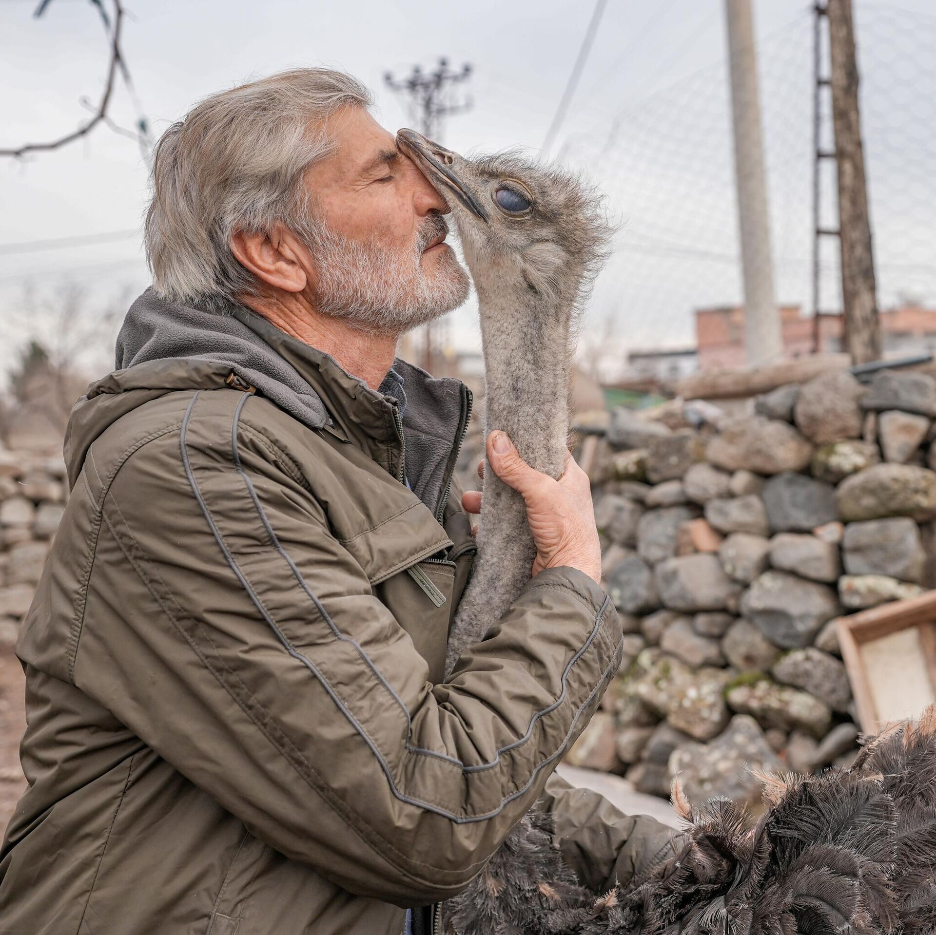 لقطة طريفة لرجل يداعب نعامة في منطقة سور في ديار بكر، تركيا. - سبوتنيك عربي