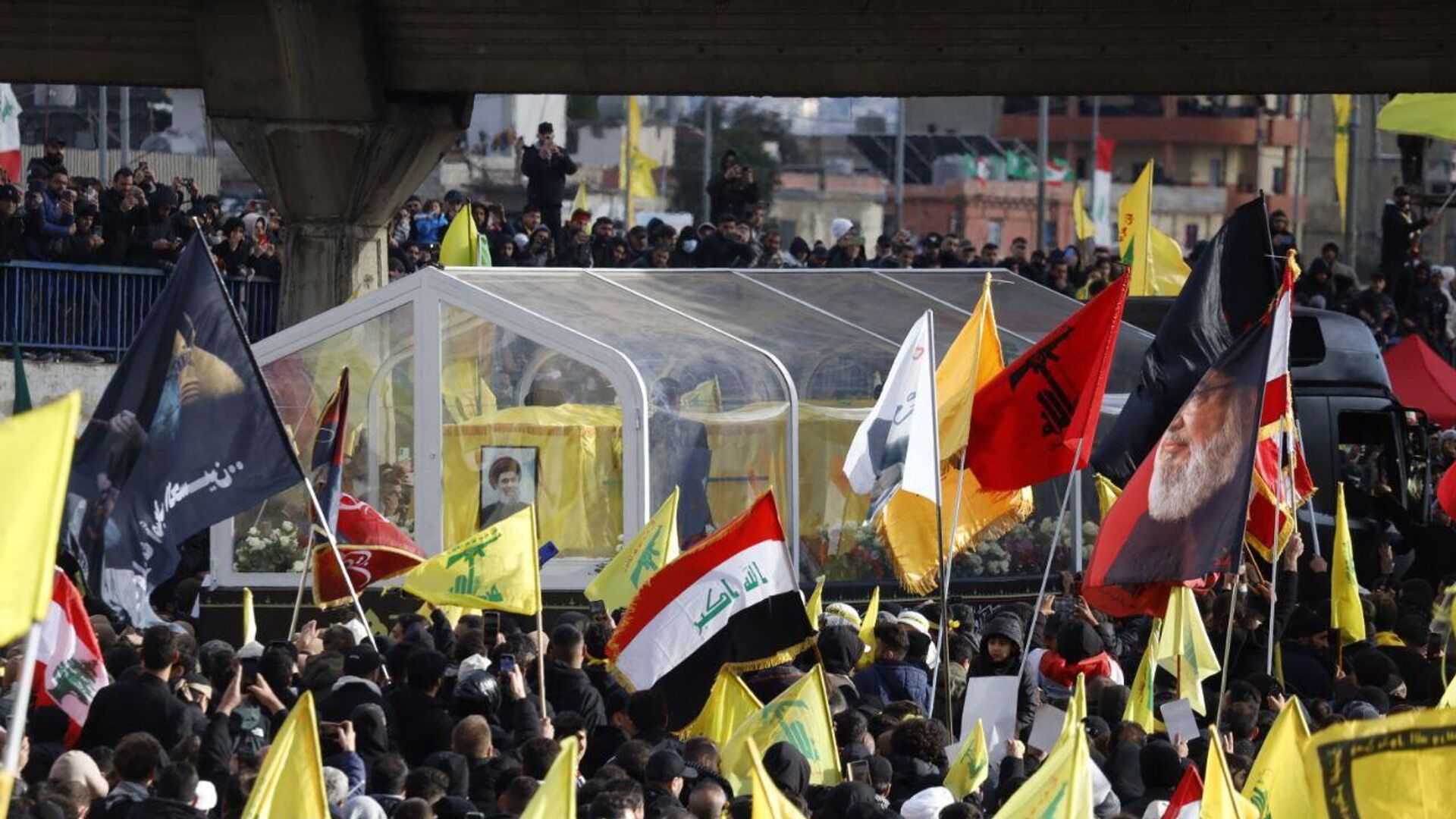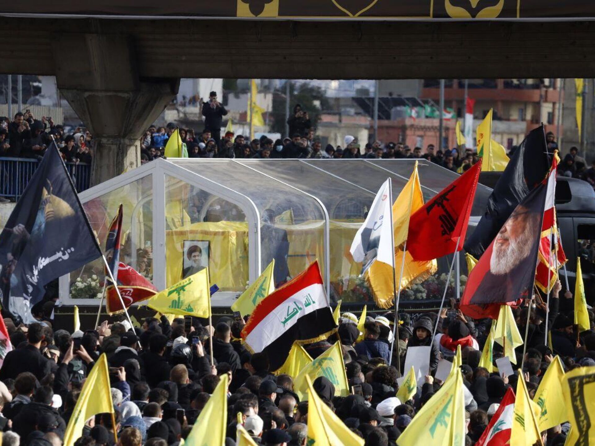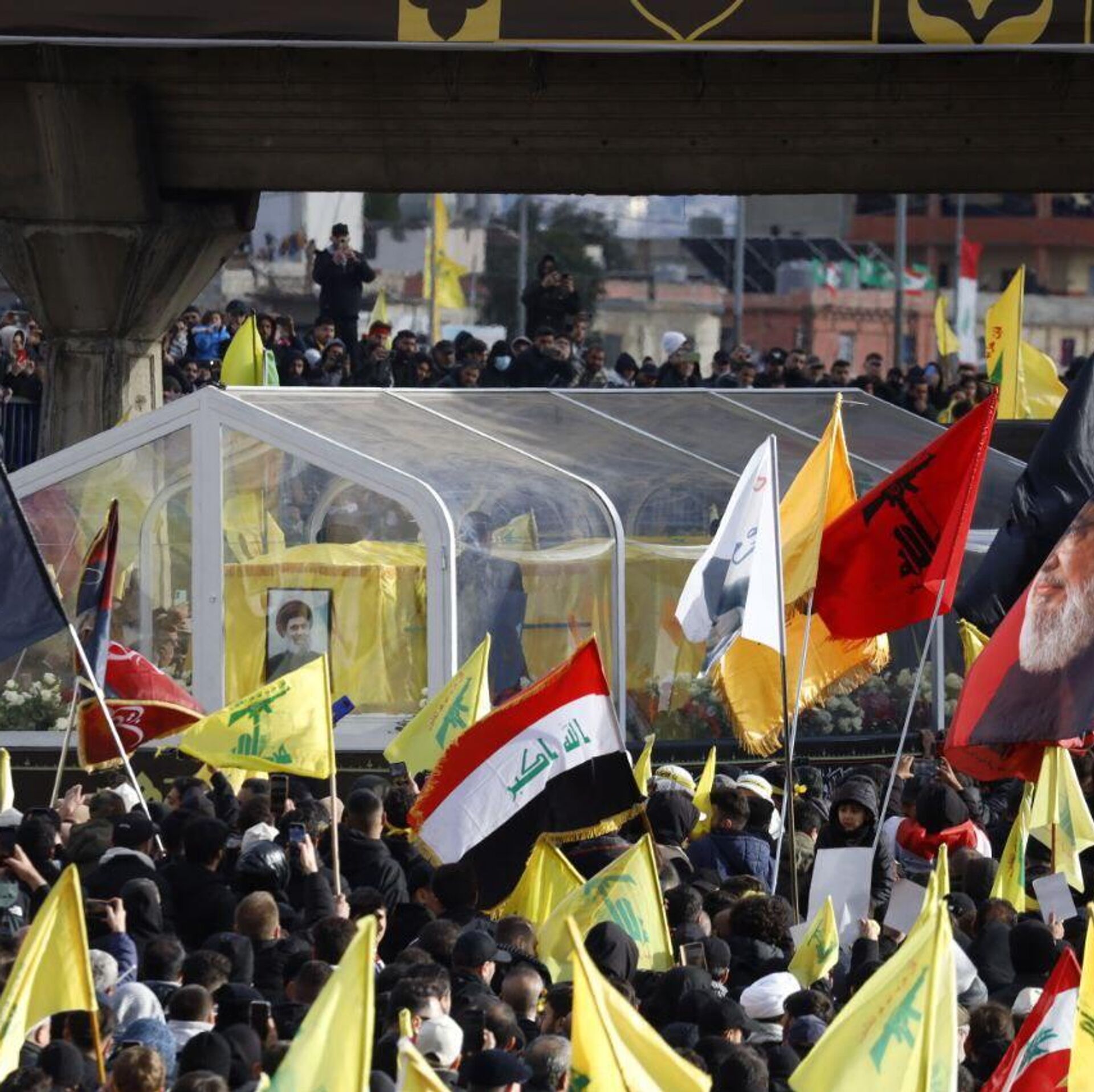 وأجريت مراسم تشييع جنازة الأمينين العامين السابقين لـ"حزب الله" اللبناني، حسن نصر الله، وهاشم صفي الدين، في المدينة الرياضية بالعاصمة اللبنانية بيروت، بحضور وفد إيراني عالي المستوى.