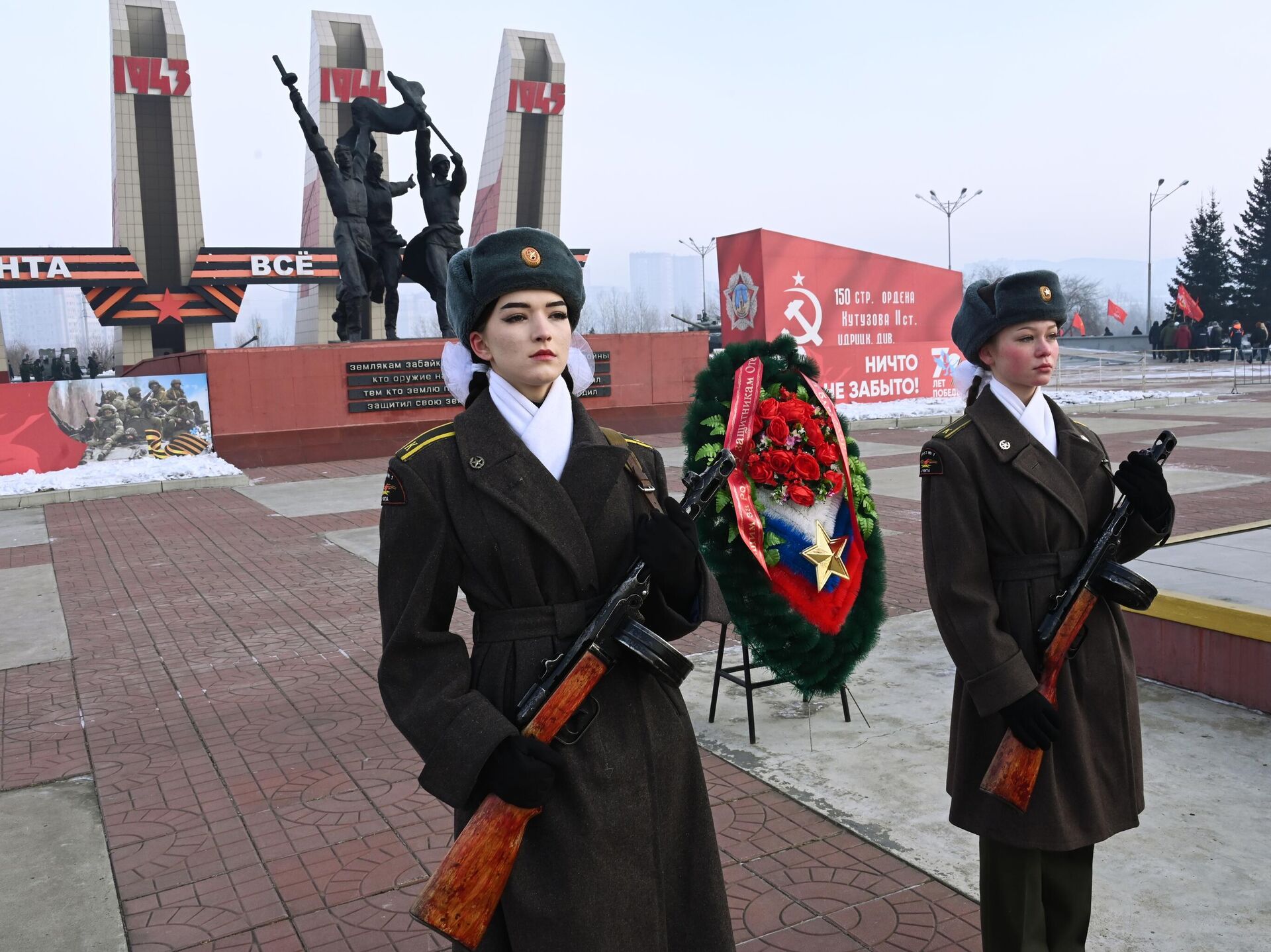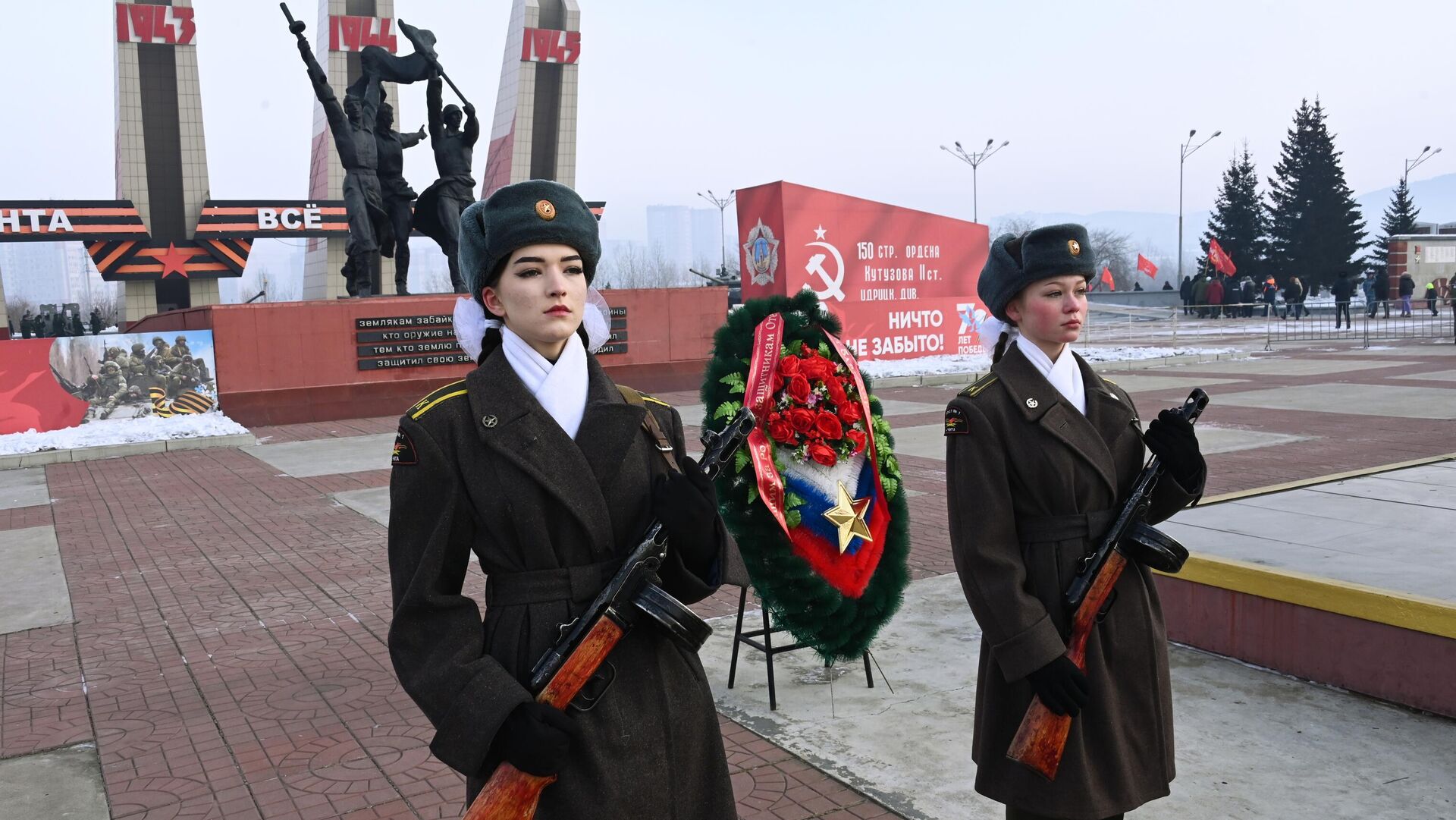 © Sputnik . Evgeny Yepanchintsev / الانتقال إلى بنك الصور مراسم وضع الزهور على النصب التذكاري المخصص للأبطال - المشاركين في العملية العسكرية الروسية الخاصة، لاحتفال بيوم المدافع عن الوطن في تشيتا، روسيا مراسم وضع الزهور على النصب التذكاري المخصص للأبطال - المشاركين في العملية العسكرية الروسية الخاصة، لاحتفال بيوم المدافع عن الوطن في تشيتا، روسيا
