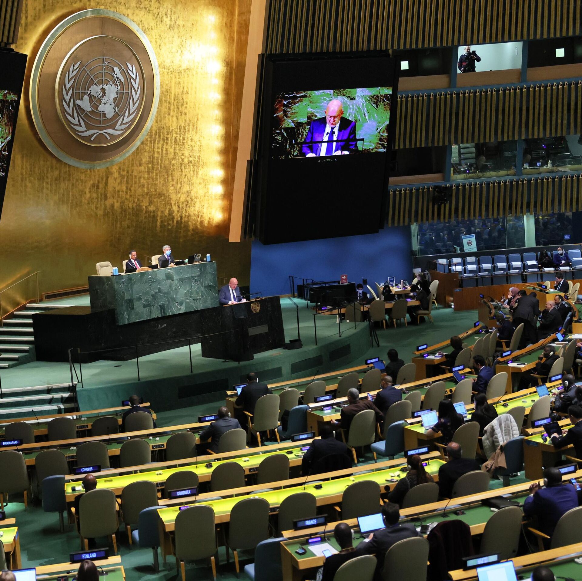 وأشار نيبينزيا إلى أن مشروع القرار الذي أعدته الولايات المتحدة الأمريكية في الجمعية العامة للأمم المتحدة بشأن أوكرانيا يعد "خطوة في الاتجاه الصحيح".