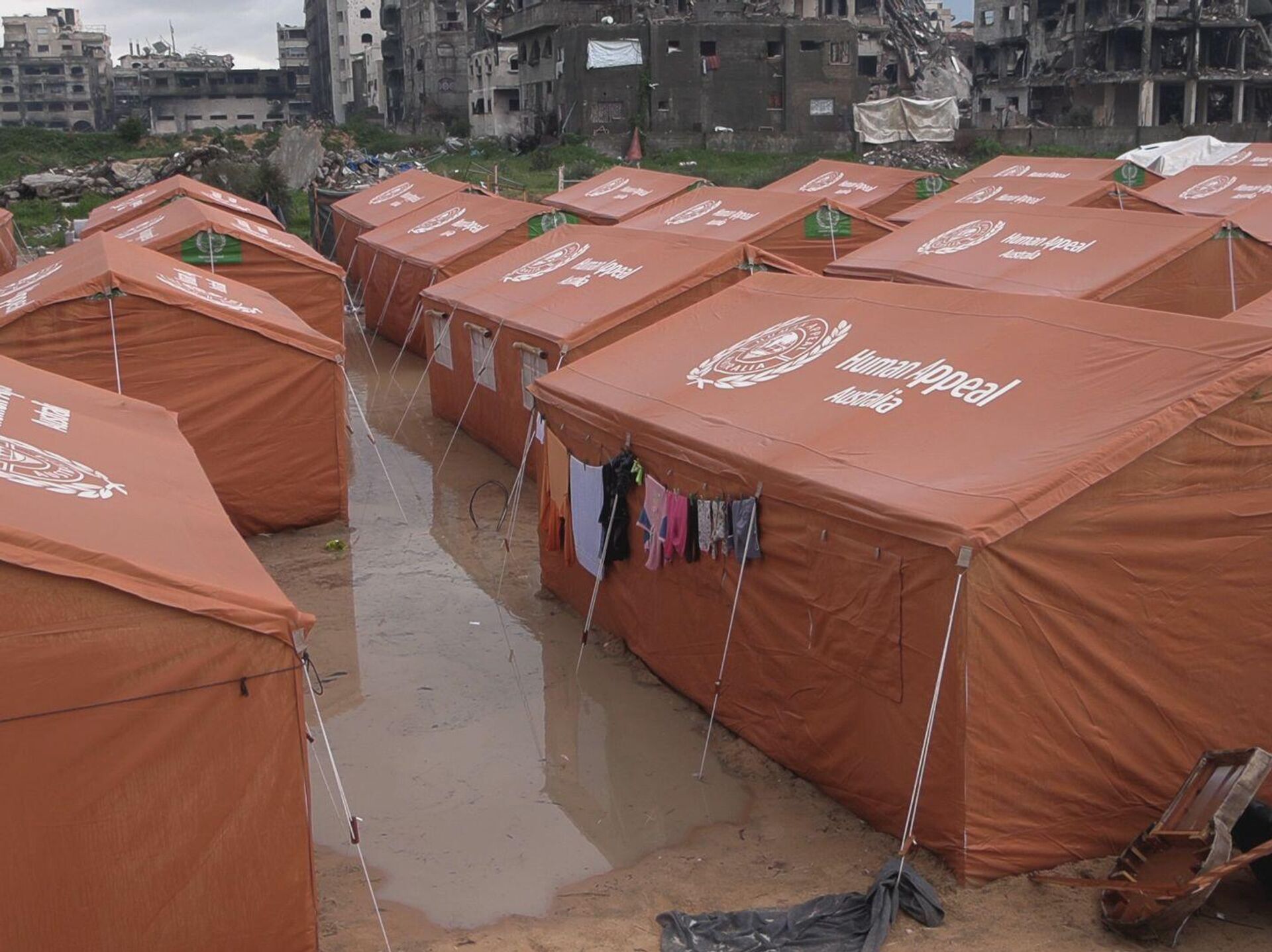 ويواجه النازحون ظروفاً قاسية وسط برد قارس ورياح عاتية، إذ يعيش الآلاف في خيام مصنوعة من النايلون والقماش الرقيق، تفتقر إلى أدنى مقومات الحماية من الأمطار والعواصف، كما يواجه من عادوا إلى غزة وشمال القطاع صعوبات في نصب خيامهم وتثبيتها، في ظل ظروف مناخية غير مواتية، إضافة إلى النقص الحاد في المواد الغذائية وانعدام وسائل التدفئة.