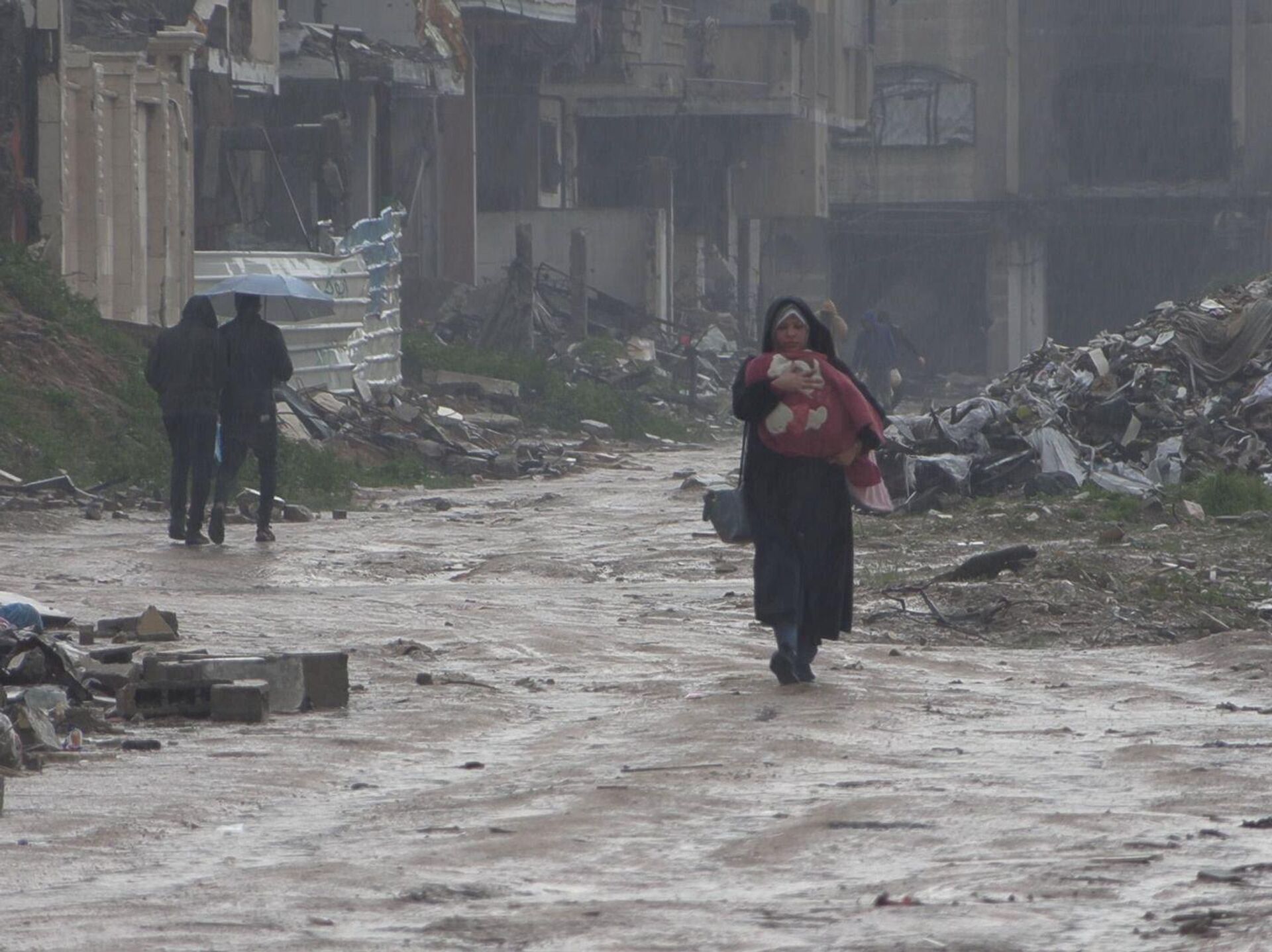 العائدون إلى غزة يكافحون برد الشتاء والأمطار الغزيرة التي تقتحم خيامهم الضعيفة - سبوتنيك عربي, 1920, 01.03.2025