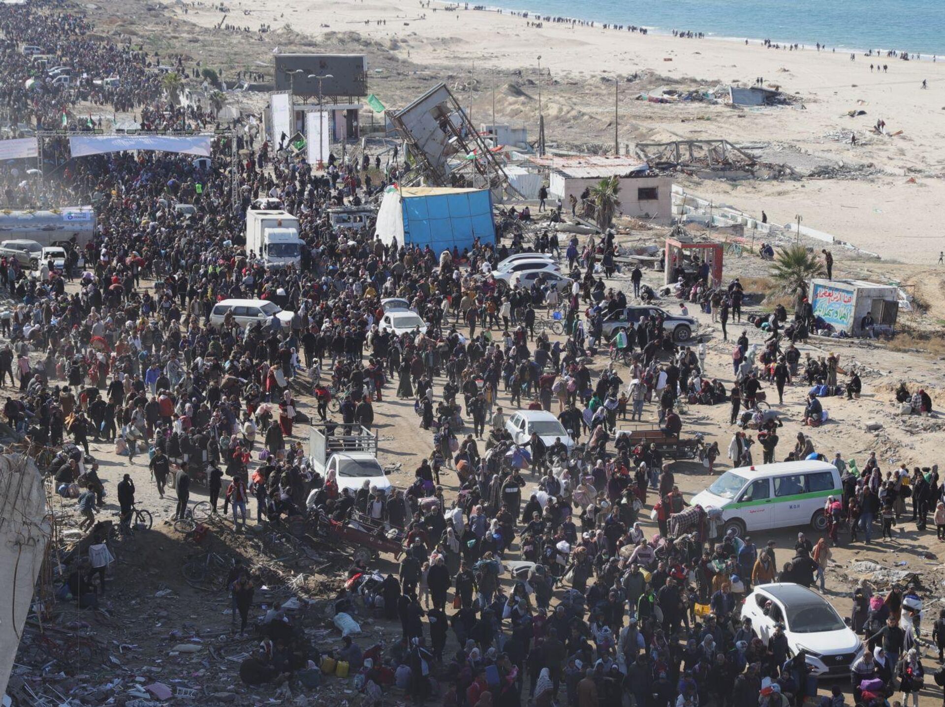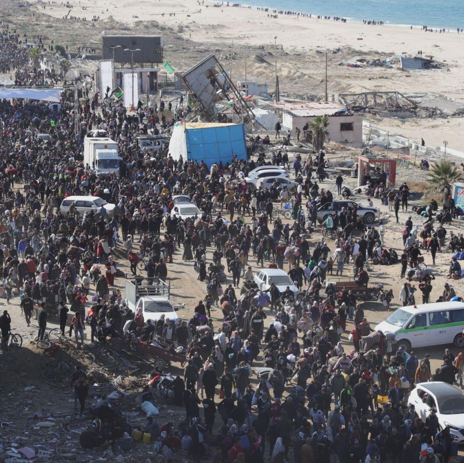 © Sputnik . Ajwad Jradatآلاف الفلسطينيين النازحين يعودون إلى شمال قطاع غزة