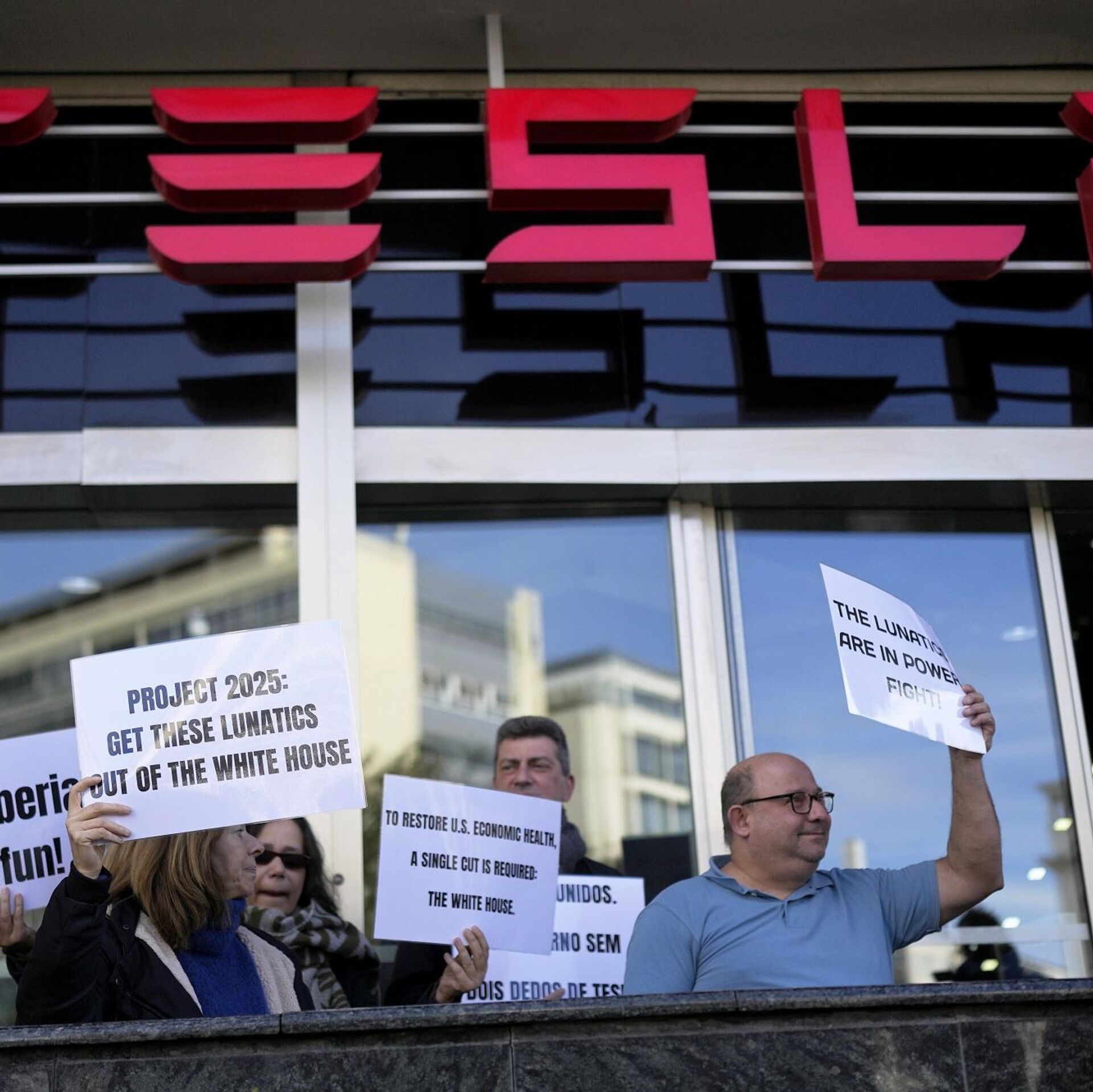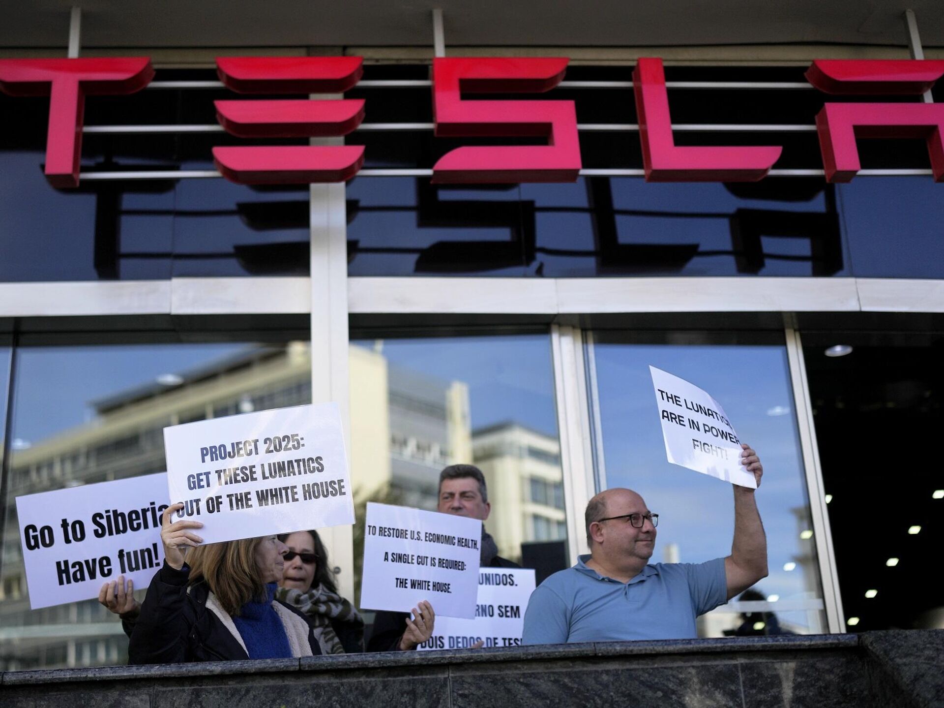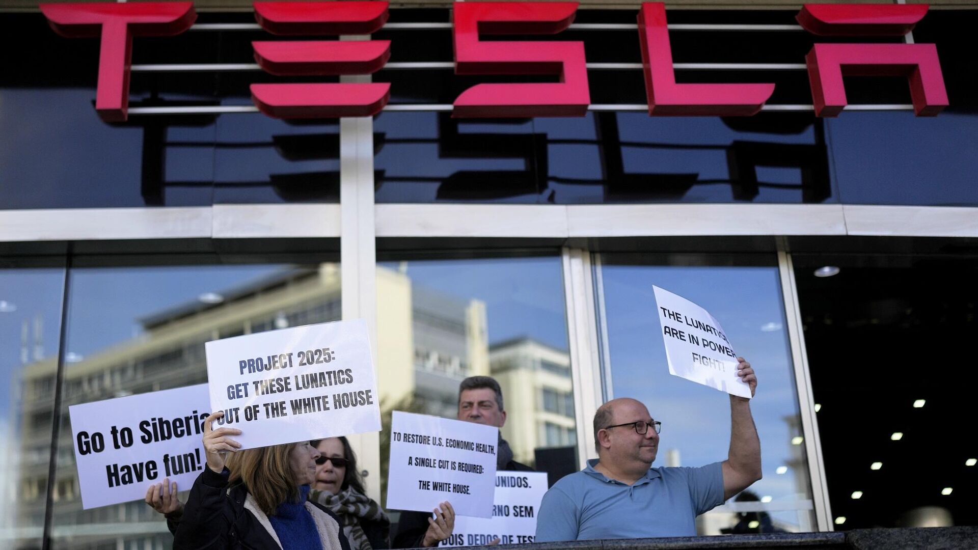 مستشاره الملياردير إيلون ماسك، مع شعارات مثل "قاطعوا تسلا"، حسبما ذكرت وسائل إعلام أمريكية.