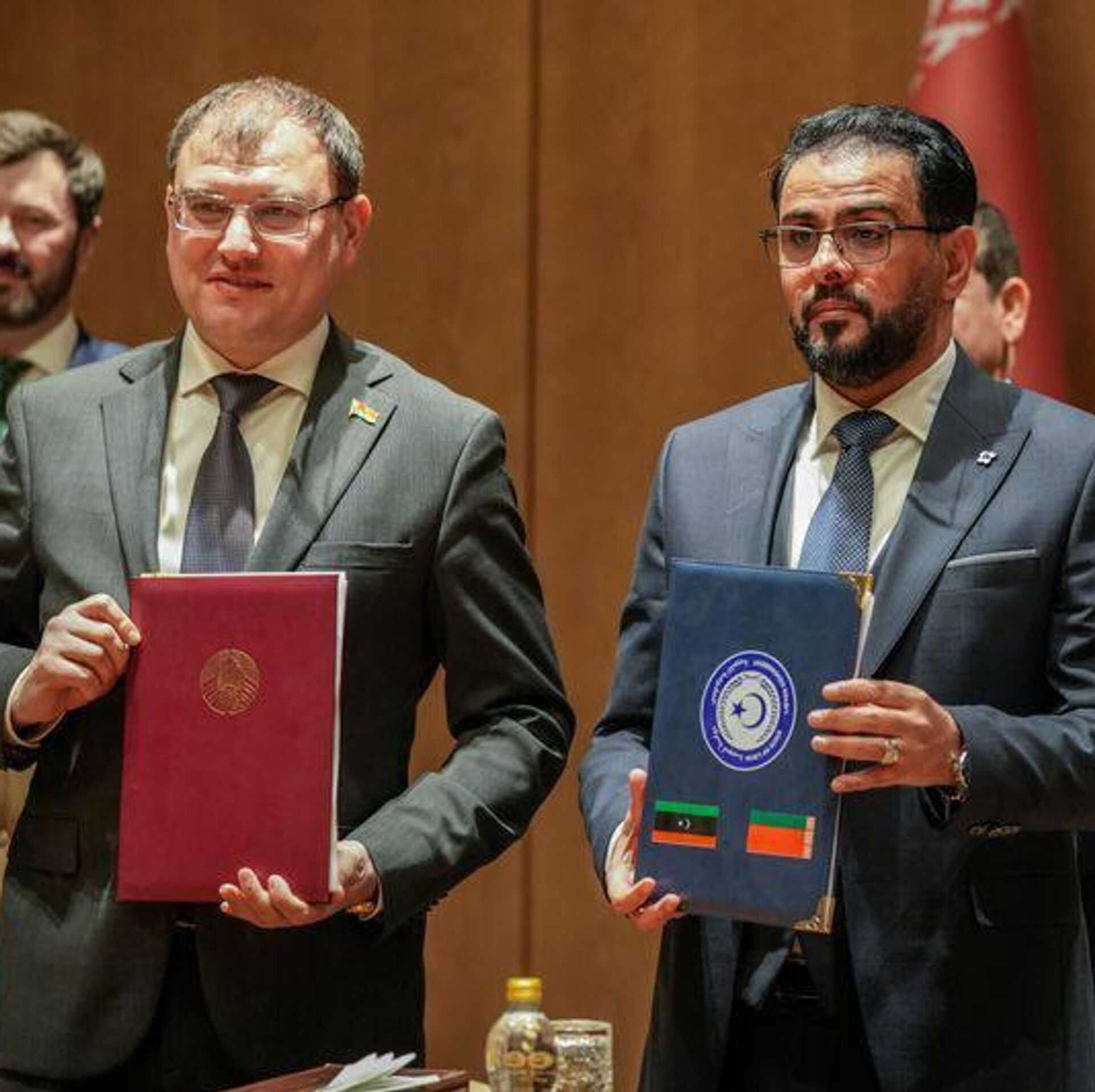 ووقّعت ليبيا وجمهورية بيلاروسيا، اتفاقية تفاهم في مدينة بنغازي تهدف إلى تعزيز التعاون الثنائي في مجالات الزراعة، الصناعة، التعدين، الرعاية الصحية، التعليم، والأمن.