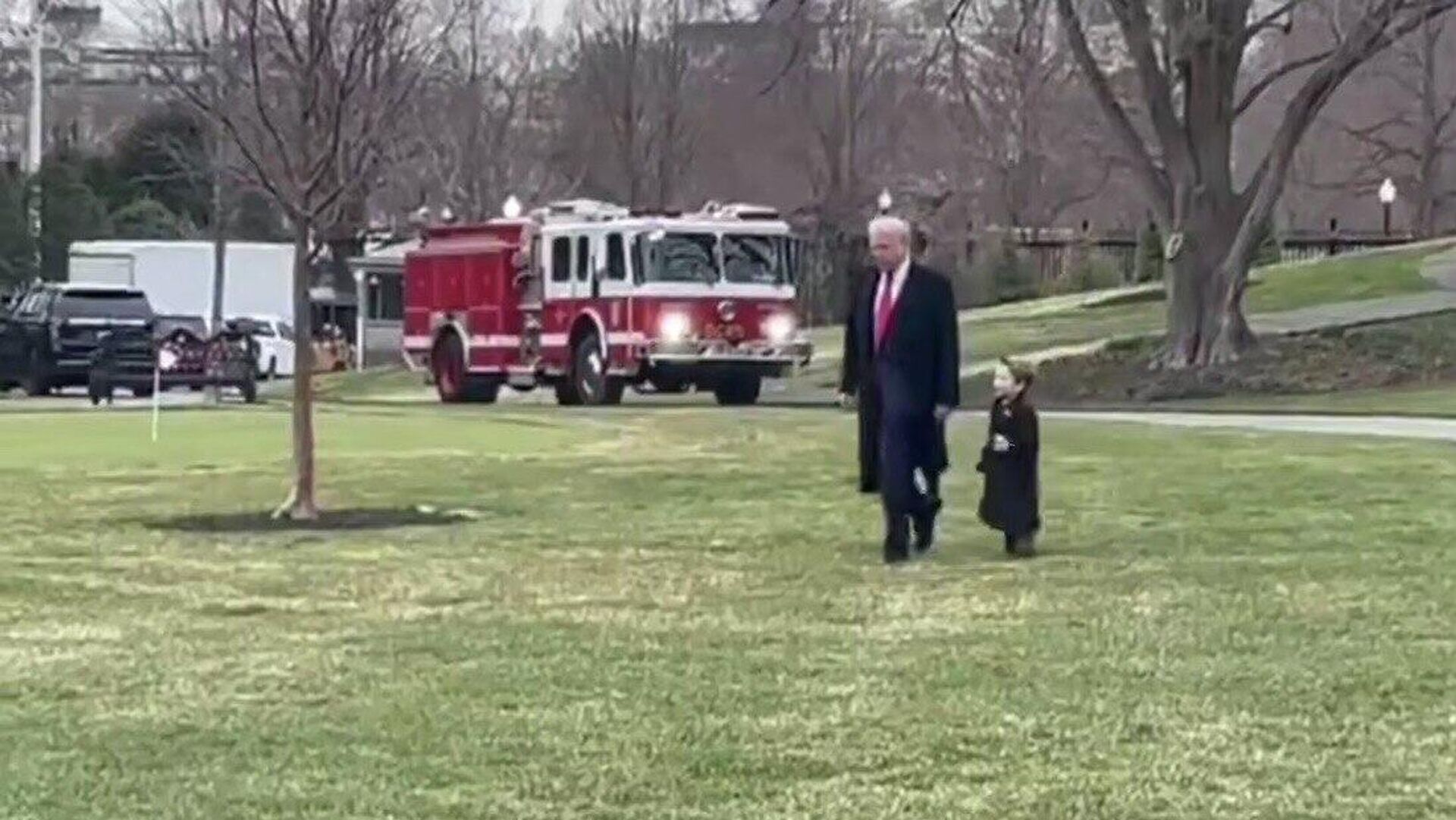 وكانت طاقة الطفل الصغير واضحة في الصور، حيث كان يقفز ويرفع يديه في الهواء، بينما لوّح ترامب لتجمع الصحفيين.