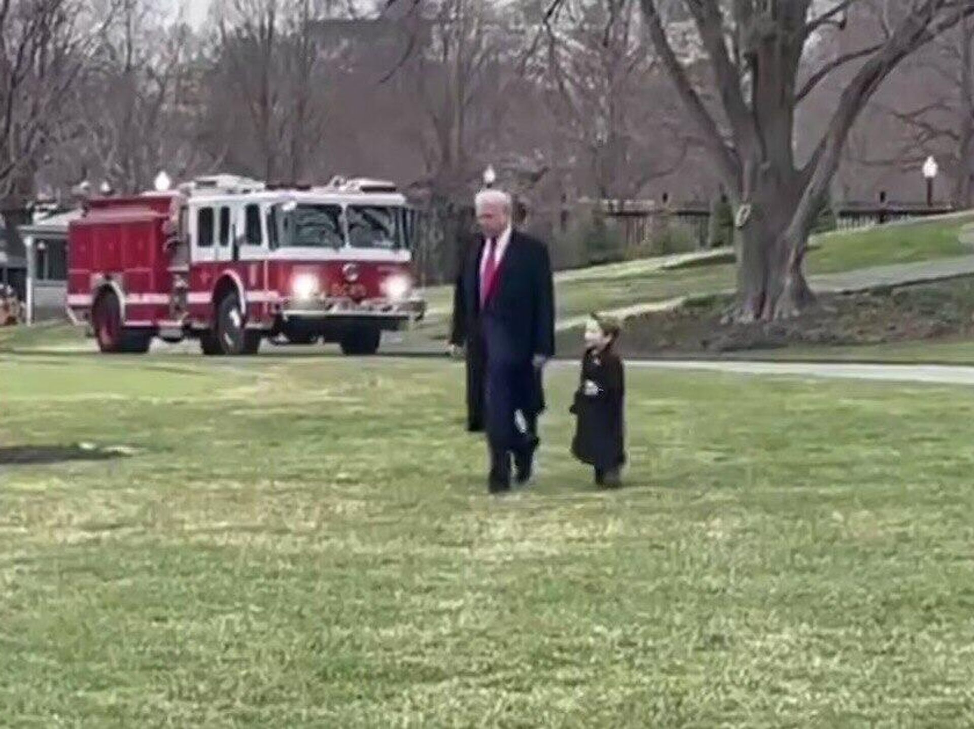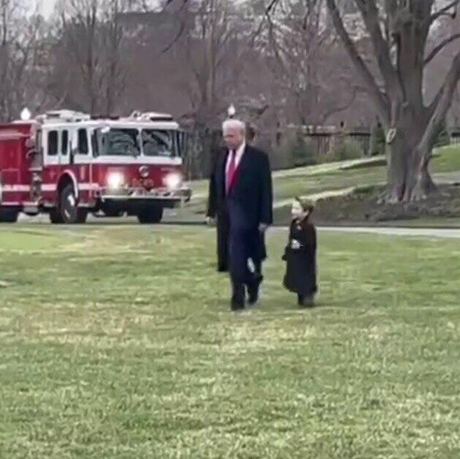ويظهر ترامب في الصورة مرتديا معطفا أسود أنيقا، وهو يمشي بابتسامة عريضة صحبة "ليل إكس"، الذي كان متحمسا وسعيدا، أثناء توجههما إلى مروحية "مارين فورس وان" يوم الجمعة.وكانت طاقة الطفل الصغير واضحة في الصور، حيث كان يقفز ويرفع يديه في الهواء، بينما لوّح ترامب لتجمع الصحفيين.