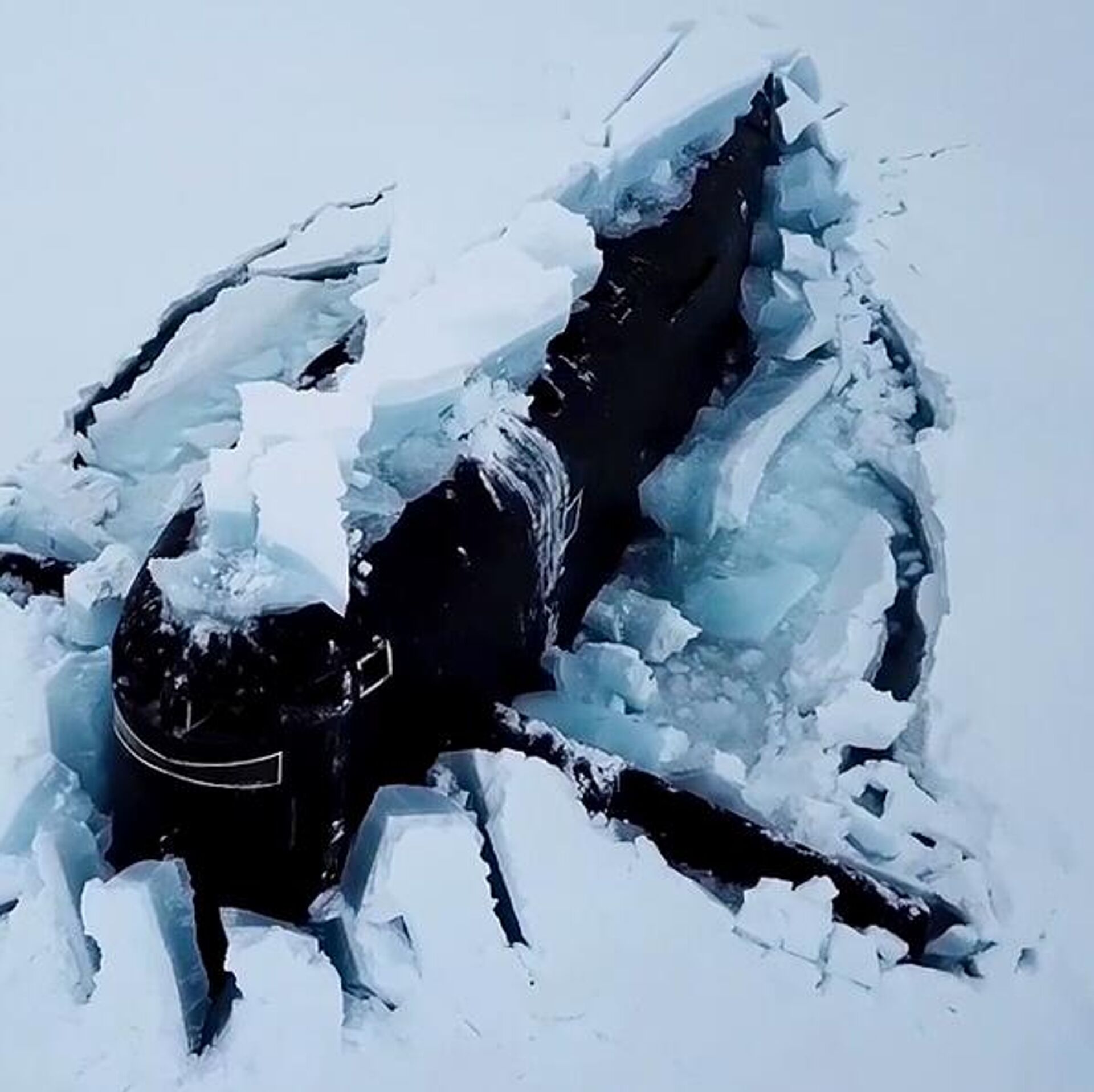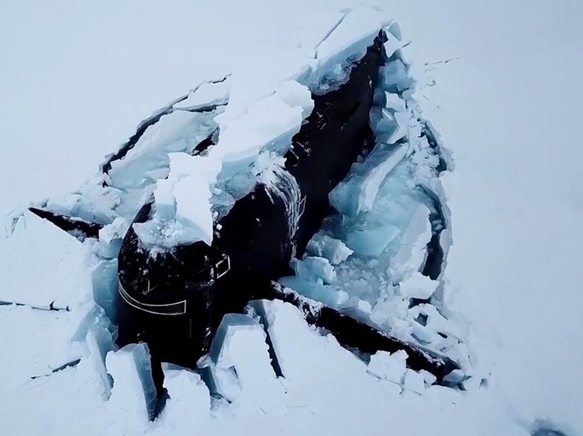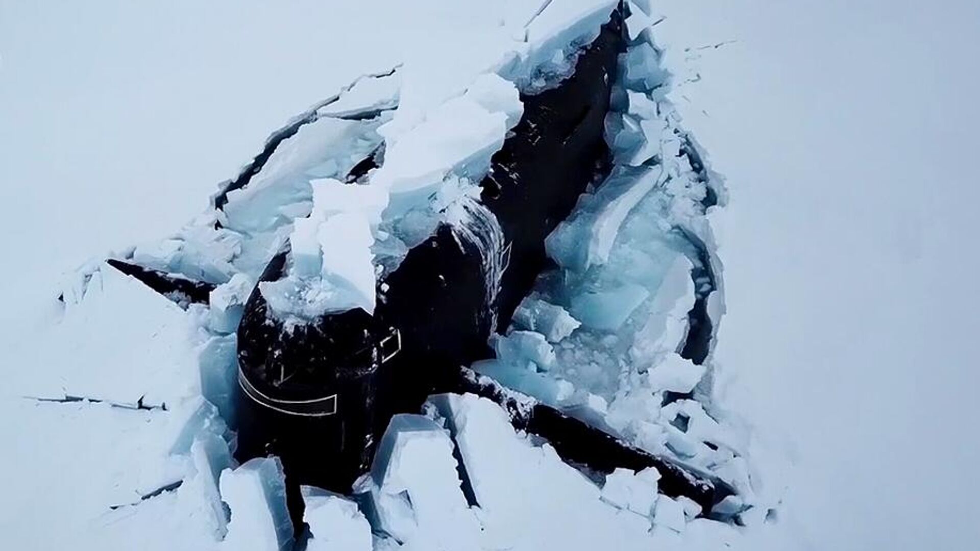 غواصة نووية تابعة للبحرية الروسية أثناء التدريبات كجزء من البعثة القطبية المعقدة للبحرية والجمعية الجغرافية الروسية "أومكا-21". لأول مرة في تاريخ البحرية، ظهرت ثلاث غواصات نووية من تحت الجليد في القطب الشمالي.