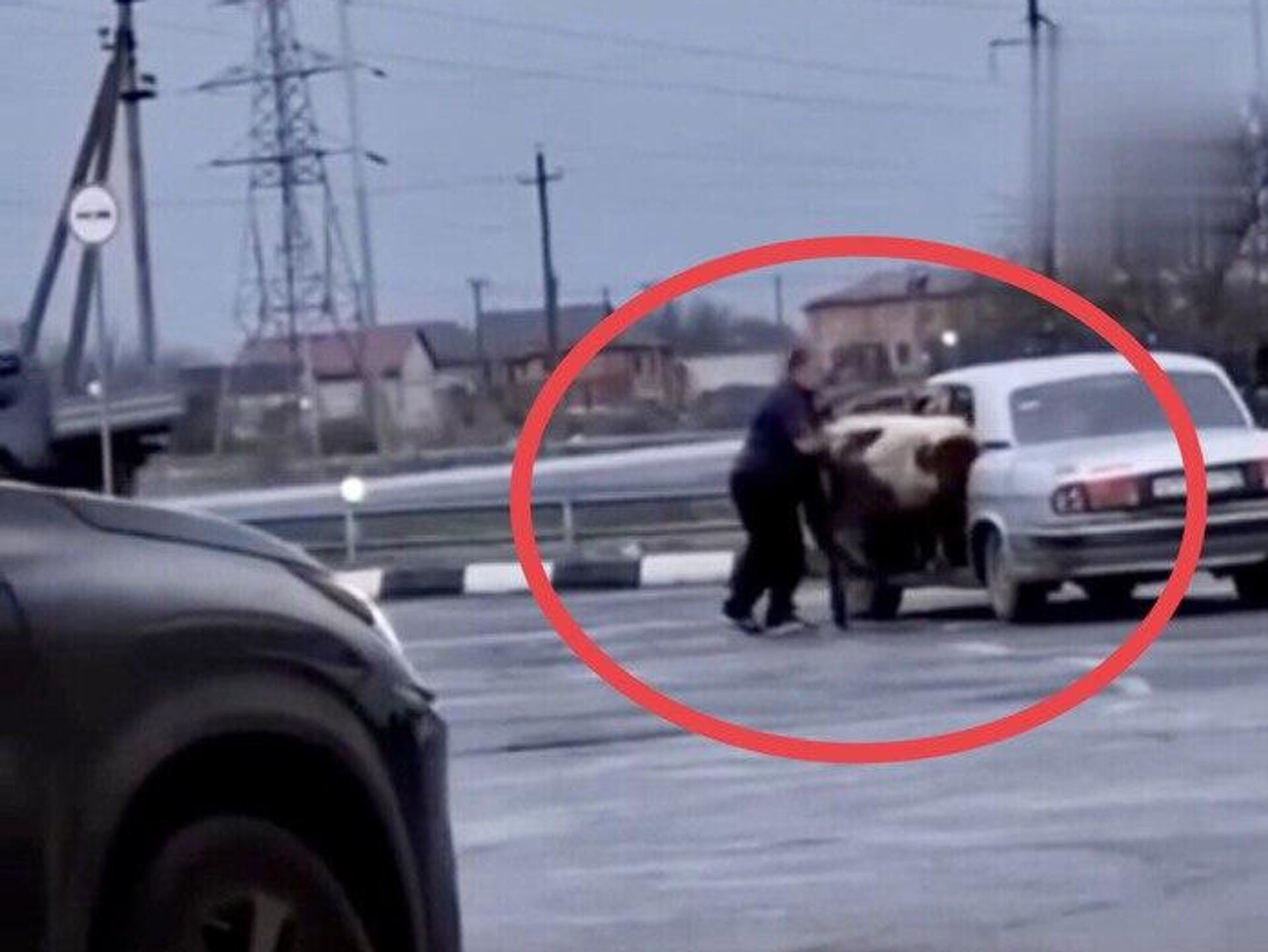 وقام الرجل بدفع البقرات الواحدة تلو الأخرى، بحسب تعليقات المواطنين على الفيديو الذي انتشر بشكل واسع، حيث يظهر رأس البقرة الثانية من أسفل الباب قبل أن يدفعها السائق إلى الداخل ويغلق الباب بشدة.
