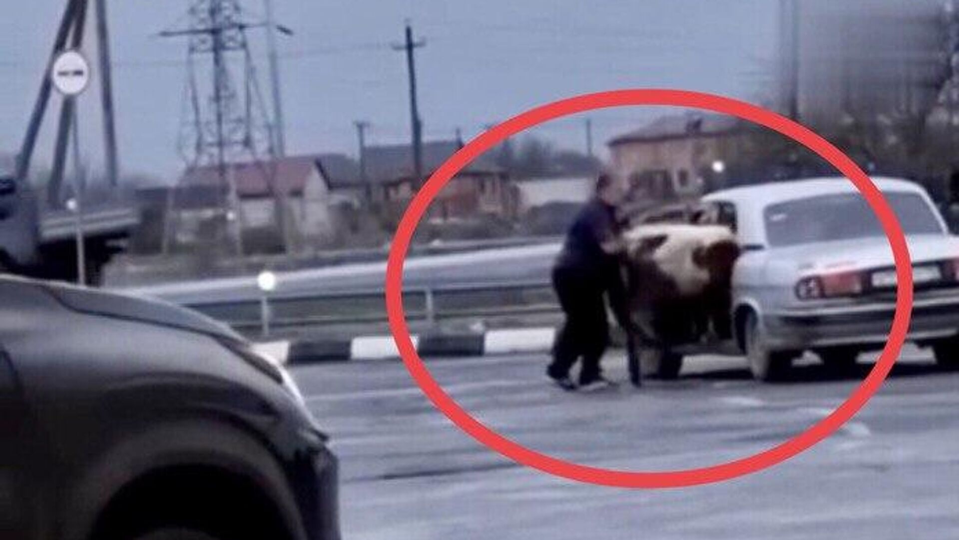 انتشر على مواقع التواصل الاجتماعي مقطع فيديو مثيرا للدهشة يظهر رجلا يضع ثلاث بقرات داخل سيارة فولغا في مدينة فلاديكافكاز الروسية. 22.03.2025, سبوتنيك عربي
