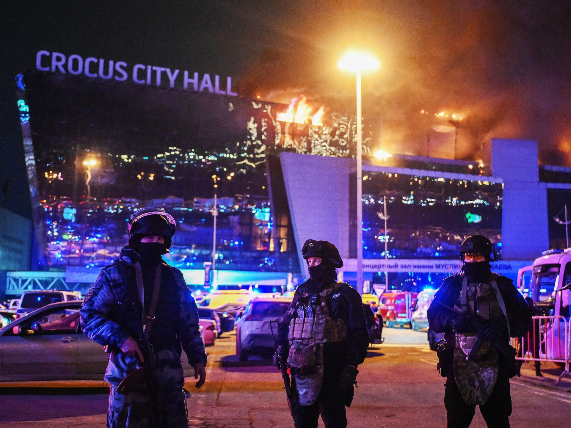 ووقع هجوم إرهابي في قاعة الحفلات الموسيقية "كروكوس" في كراسنوغورسك بالقرب من موسكو، في 22 مارس/ آذار الماضي، حيث أطلق المهاجمون النار من أسلحة أوتوماتيكية على الأشخاص الموجودين في المبنى وأضرموا النار في القاعة، ما أدى إلى مقتل 145 شخصا.