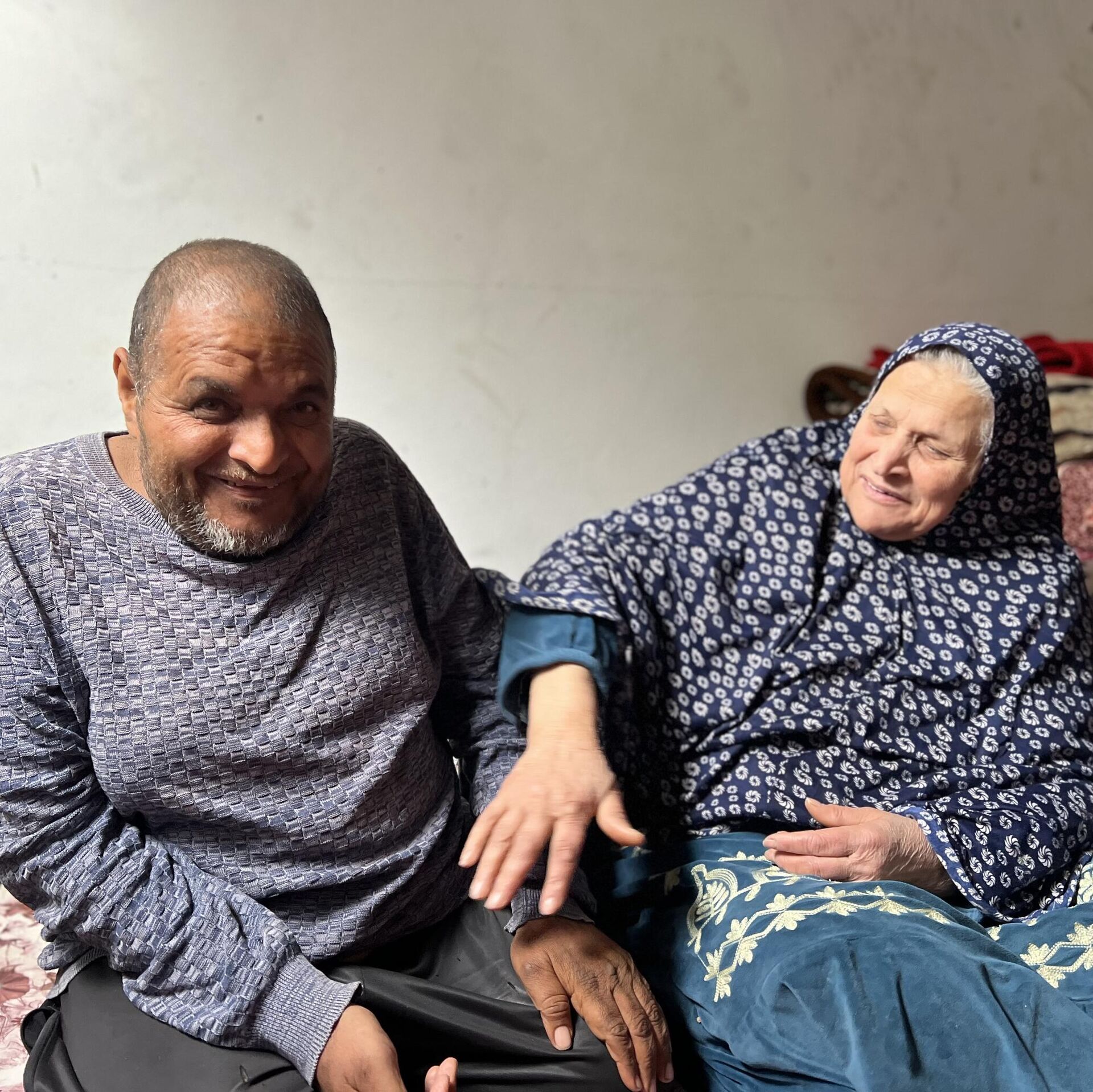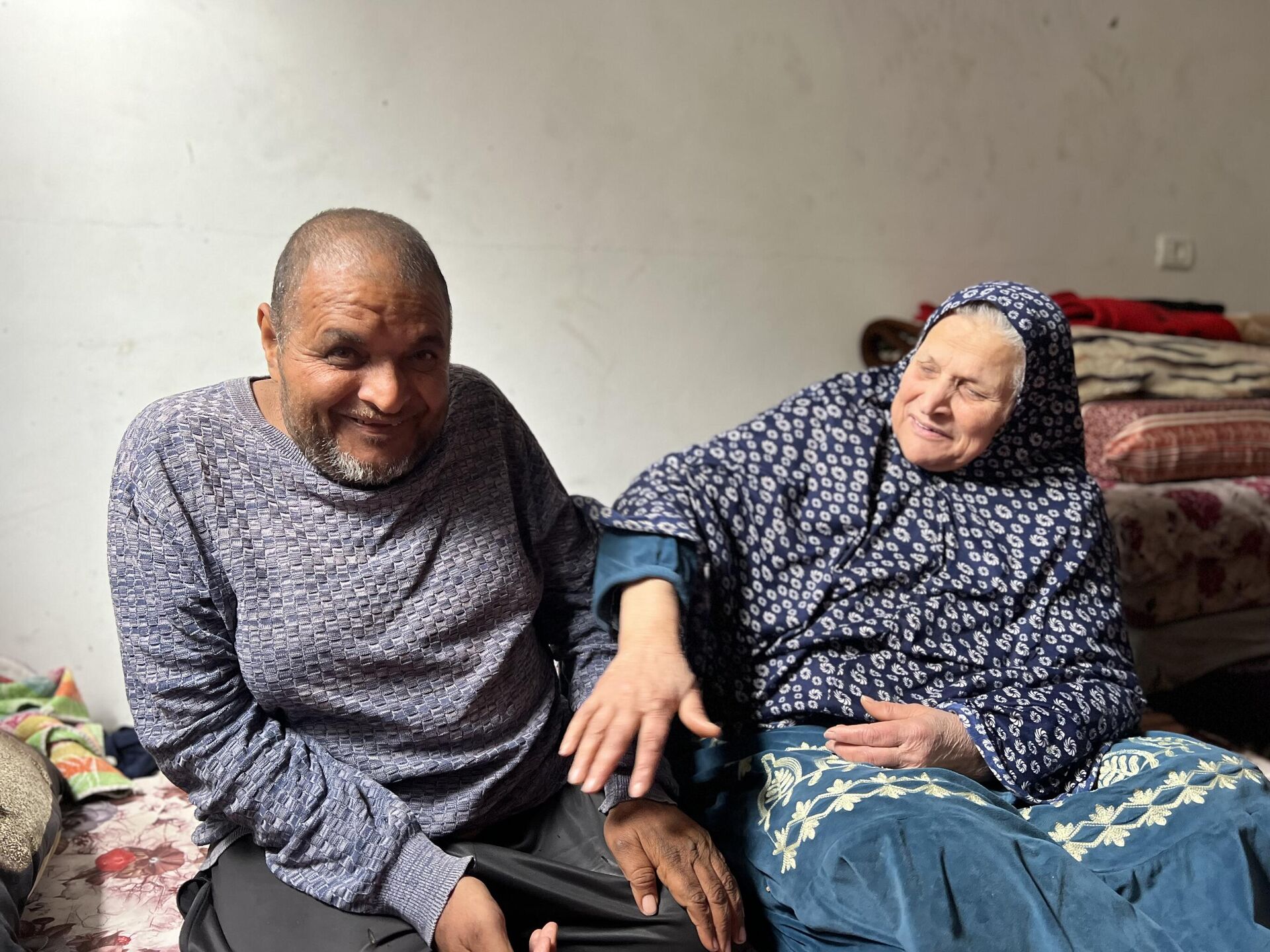 وتضيف: "حياتنا في الخيام كانت صعبة جدا على إيهاب، فهو يحتاج إلى مساعدة في كل شيء، ويعاني أيضا من قلة فهمه لما يجري، ولم يكن هناك مساعدات إنسانية خاصة لفئته، فكانت الحرب صعبة للغاية عليه وعلى جميع المعاقين، وحتى أصعب من غيرهم، فهم بحاجة إلى مساعدة في الحياة بدون حرب، فكيف مع عودة الحرب، ونخشى الآن من عودة النزوح مرة أخرى، فلقد عدنا بعد الهدنة، إلى البيت وكان مدمر، وبقيت هذه الغرفة، وكما ترى الشقوق منتشرة، والمكان خطر، لكنه يضل أفضل من الخيمة".