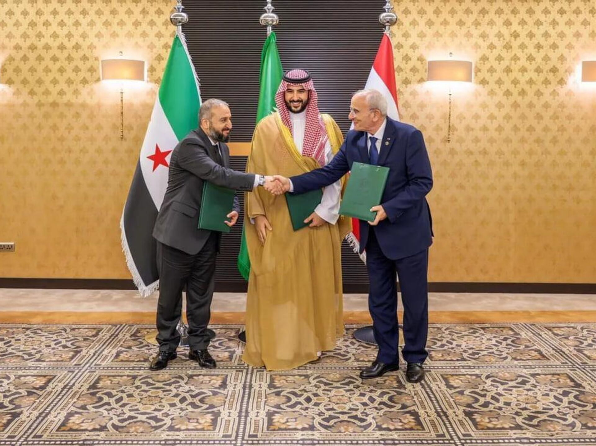 وقالت وكالة الأنباء السعودية "واس": "استضافت المملكة اجتماعًا في محافظة جدة بحضور صاحب السمو الملكي الأمير خالد بن سلمان بن عبد العزيز، وزير الدفاع، بين معالي وزير الدفاع في الجمهورية العربية السورية اللواء المهندس مرهف أبو قصرة، ومعالي وزير الدفاع الوطني في الجمهورية اللبنانية اللواء ميشال منسى،