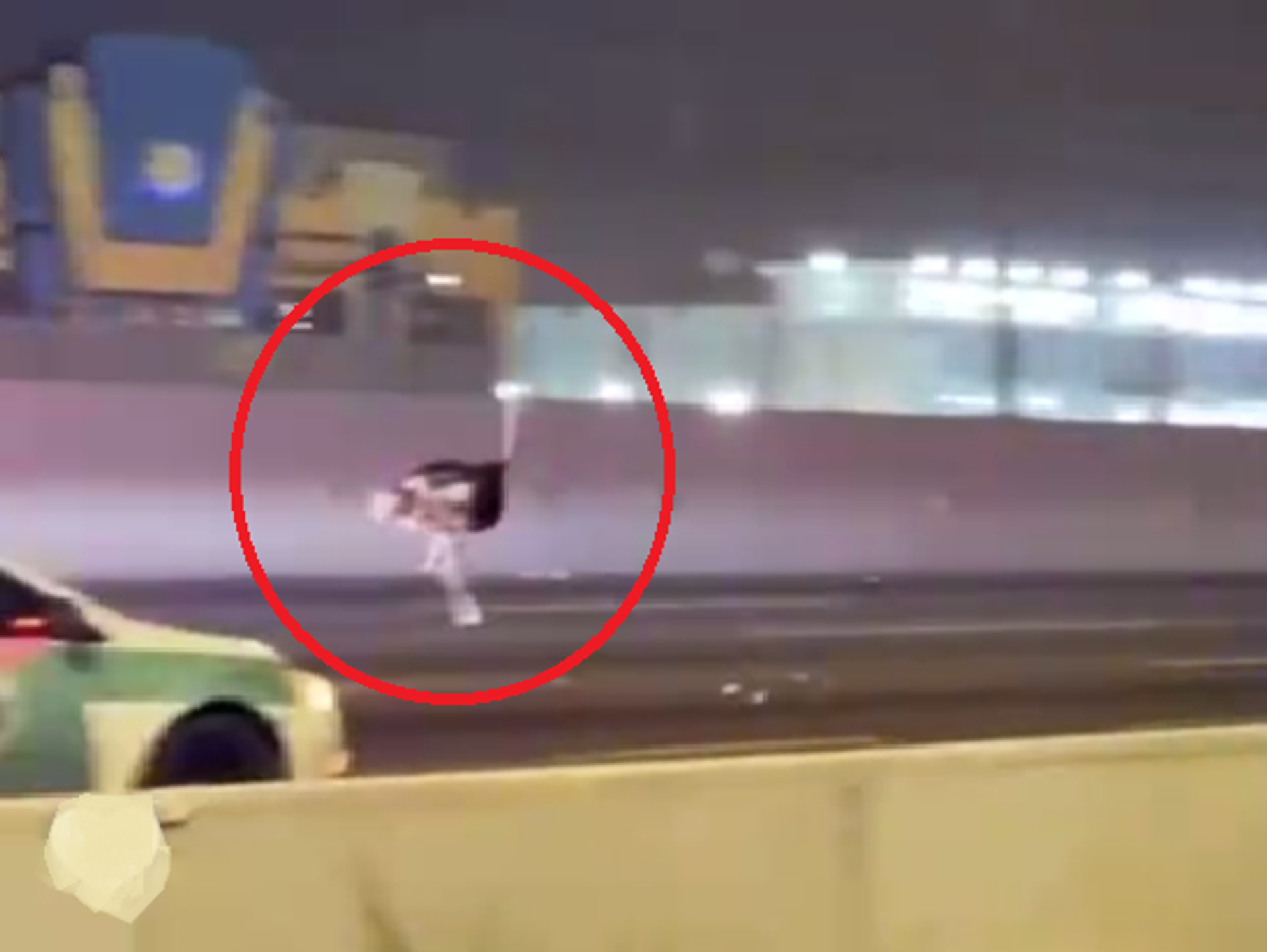 نعامة هاربة تسابق السيارات على طريق سريع في السعودية... فيديو