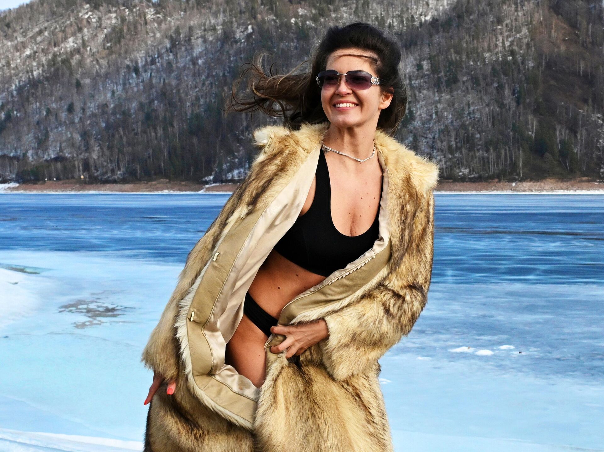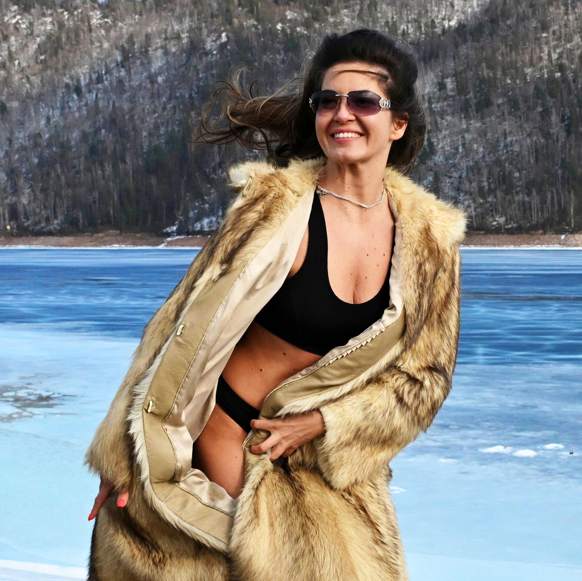 © Sputnik . Ilya Naymushin / الانتقال إلى بنك الصور فتاة تلتقط صورة على ضفاف نهر ينيسي إقليم كراسنويارسك، روسيا.