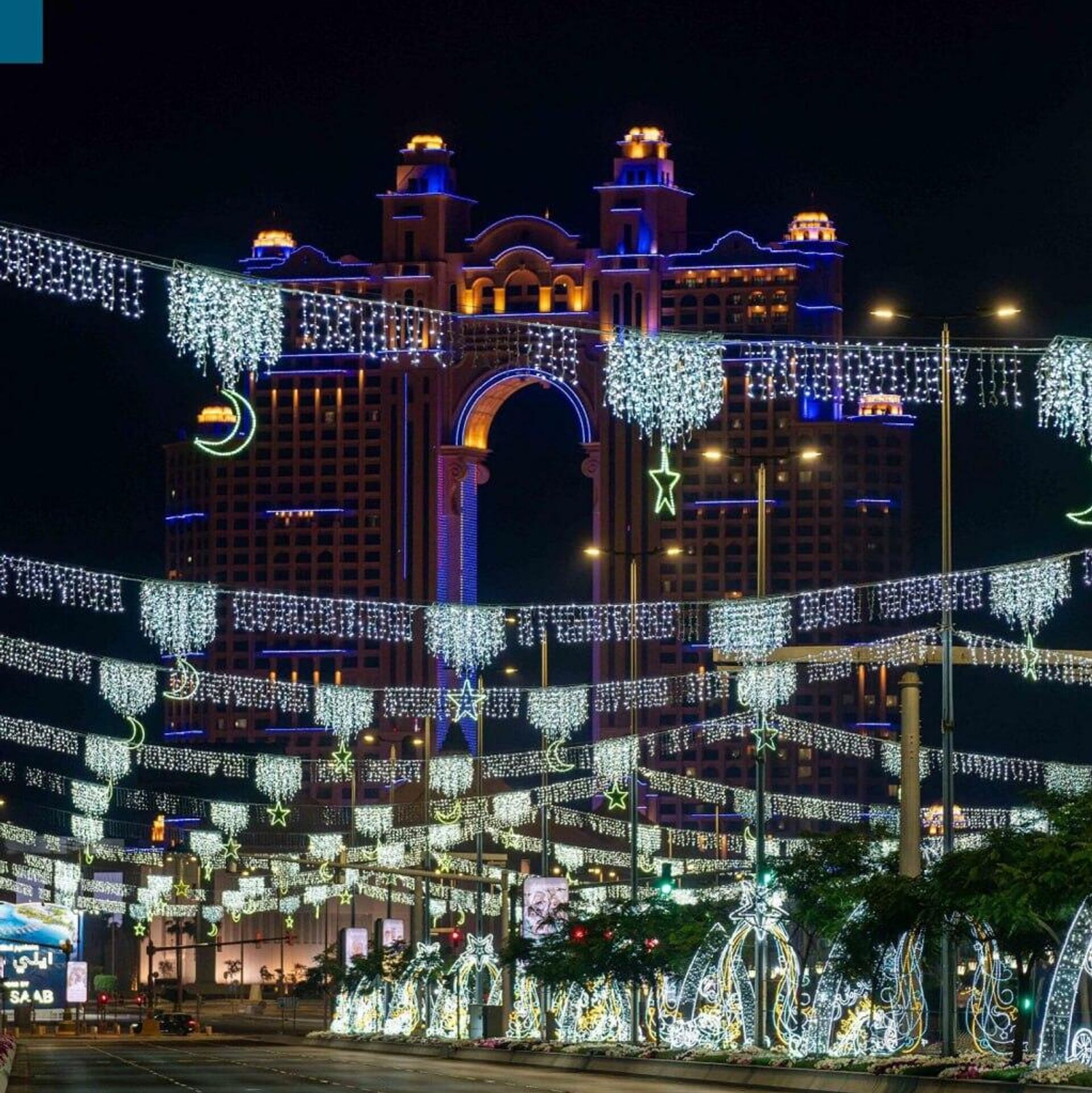ثبتت بلدية العاصمة الإماراتية أبوظبي، العديد من الشوارع الرئيسية والفرعية والجزر الوسطية والجسور داخل وخارج جزيرة أبوظبي آلاف الهياكل واللوحات المضيئة، وعبارات المعايدة، لنشر البهجة والسرور في قلوب أفراد المجتمع في المناطق كافة الواقعة ضمن نطاقها الجغرافي.