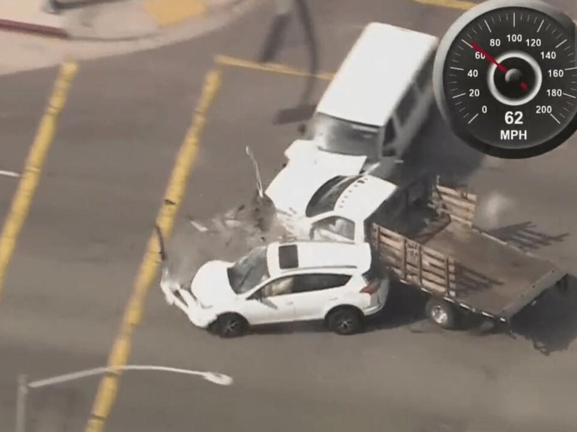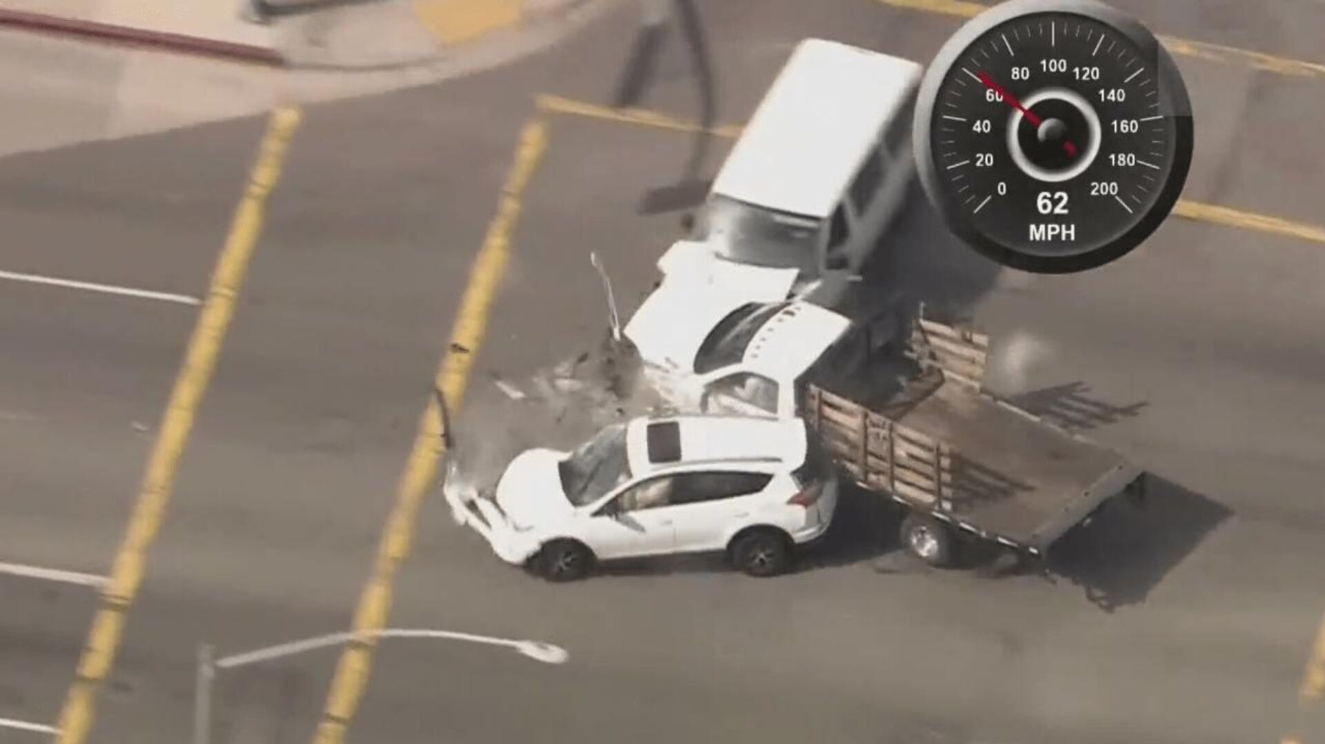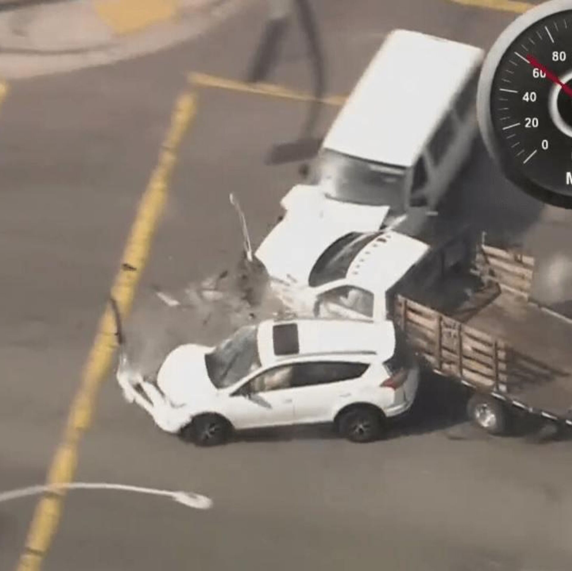 واصطدم السائق مع 13 مركبة أثناء القيادة عكس الاتجاه بسرعة تخطت 160 كيلومترا في الساعة، قبل أن تتحطم الشاحنة أخيرا أمام متجر لبيع الطلاء.