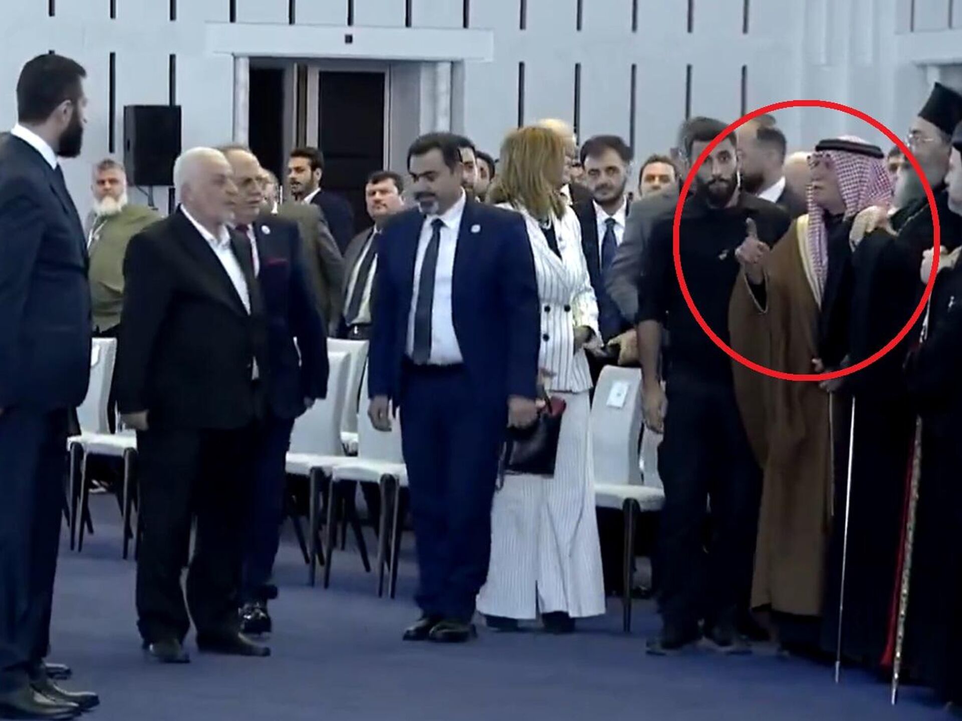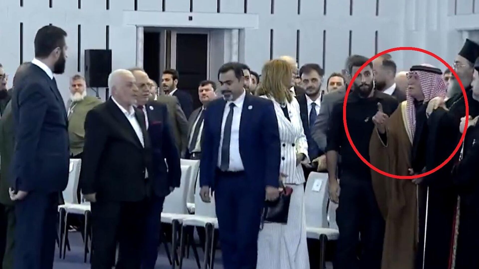 قاطع الشيخ سعود نايف النمر، شيخ عشيرة "الشنابلة" خلال حفل الإعلان عن الحكومة السورية الجديدة في قصر الشعب، الرئيس السوري للفترة الانتقالية أحمد الشرع، قبل رحيله من القاعة، موجها له شكوى حول التهميش الذي تعاني منه منطقته.