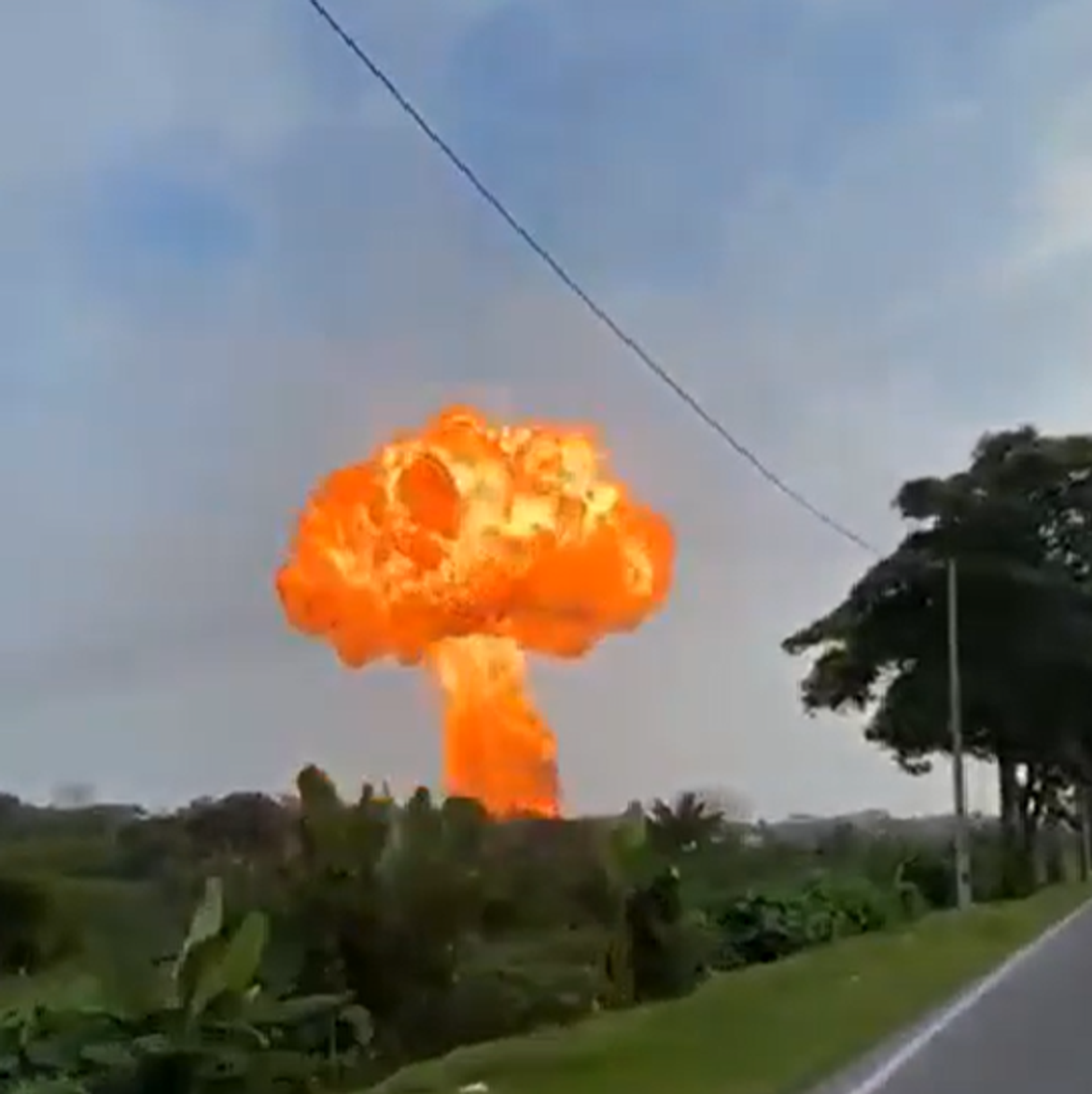 تداول رواد مواقع التواصل الاجتماعي مقطع فيديو يظهر شعلة نارية في السماء وقعت بسبب انفجار في خط أنابيب للغاز في ماليزيا.