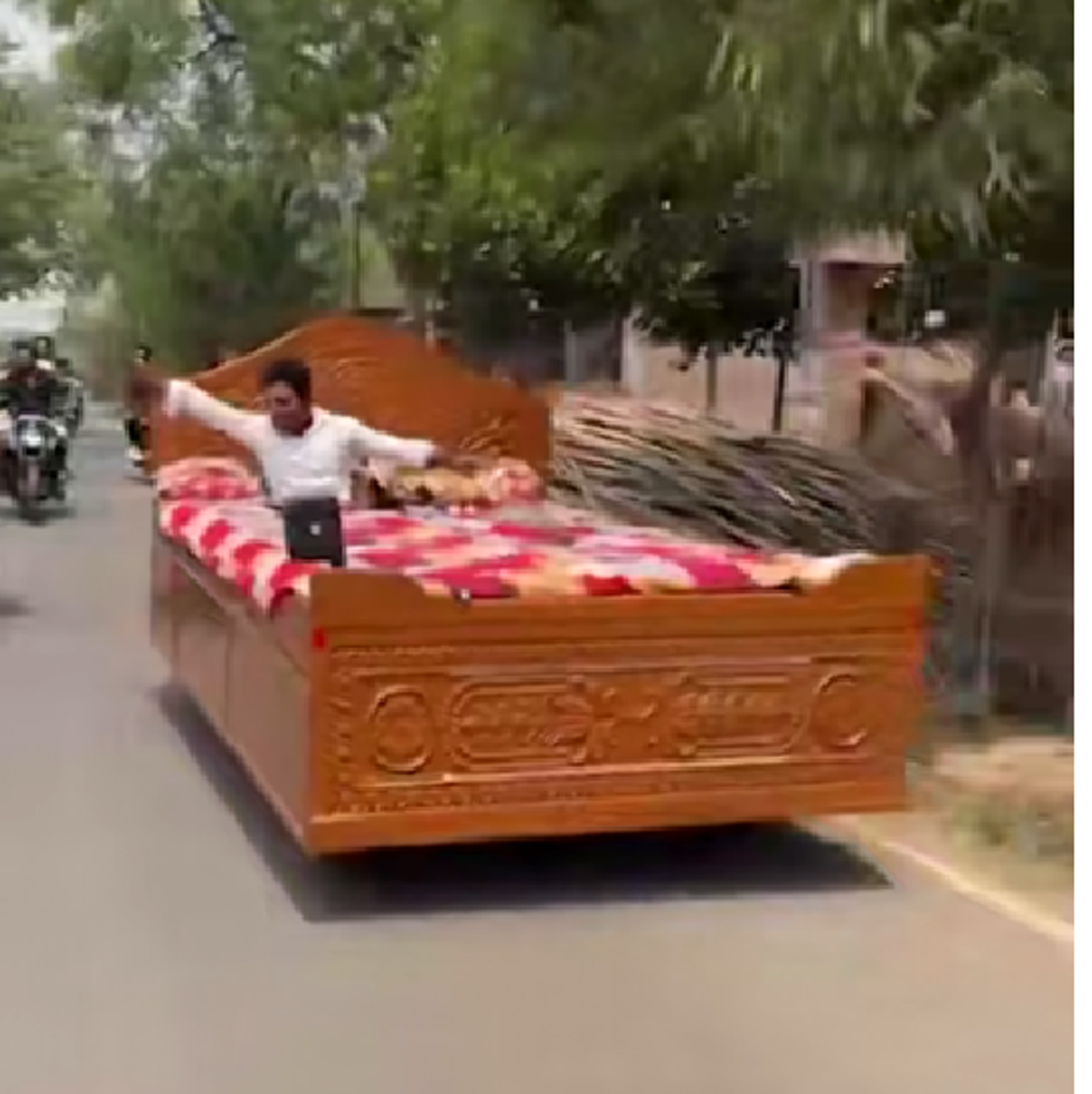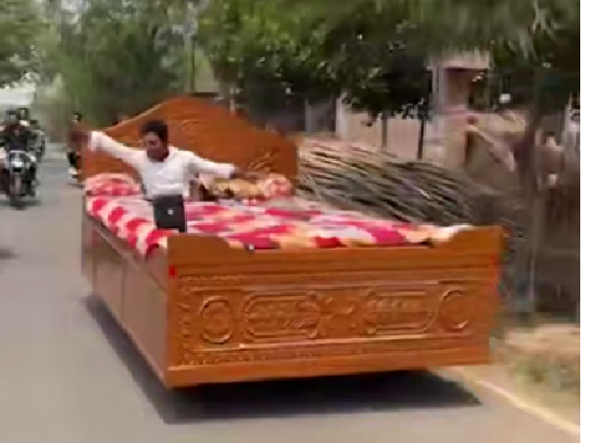 ويظهر الفيديو الذي تداوله رواد مواقع التواصل الاجتماعي، حيلة غريبة ابتكرها شاب هندي، جعلت سريره يتحول إلى "مركبة صباحية" يقودها إلى عمله.
