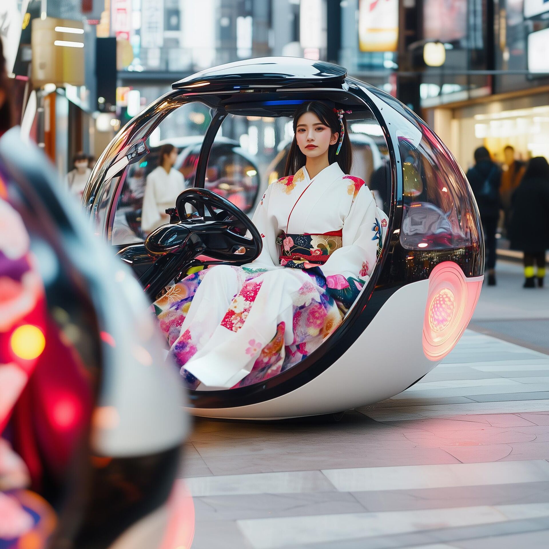 وسيلة النقل اليابانية المصغرة للمستقبل على شكل كرة ملساء . يحدد الراكب المسار من خلال واجهة صوتية، وتتحرك الكبسولة ذاتية القيادة بعناية على طول المسار المبرمج بسرعة المشي. مثالية للأحياء القديمة ذات الأزقة الضيقة.