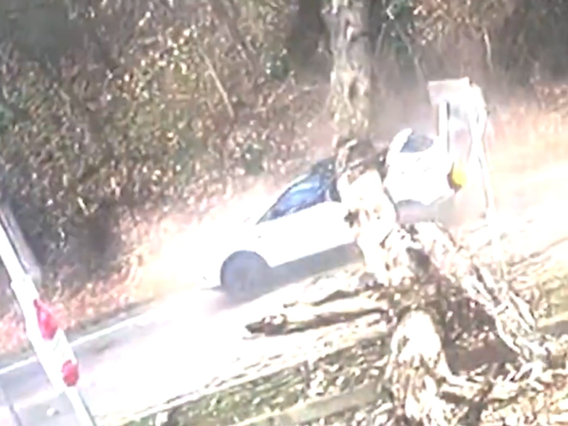 وثقت كاميرا المراقبة لحظة سقوط شجرة كبيرة على سيارة تقودها امرأة في مدينة كينيت سكوير بولاية بنسلفانيا.