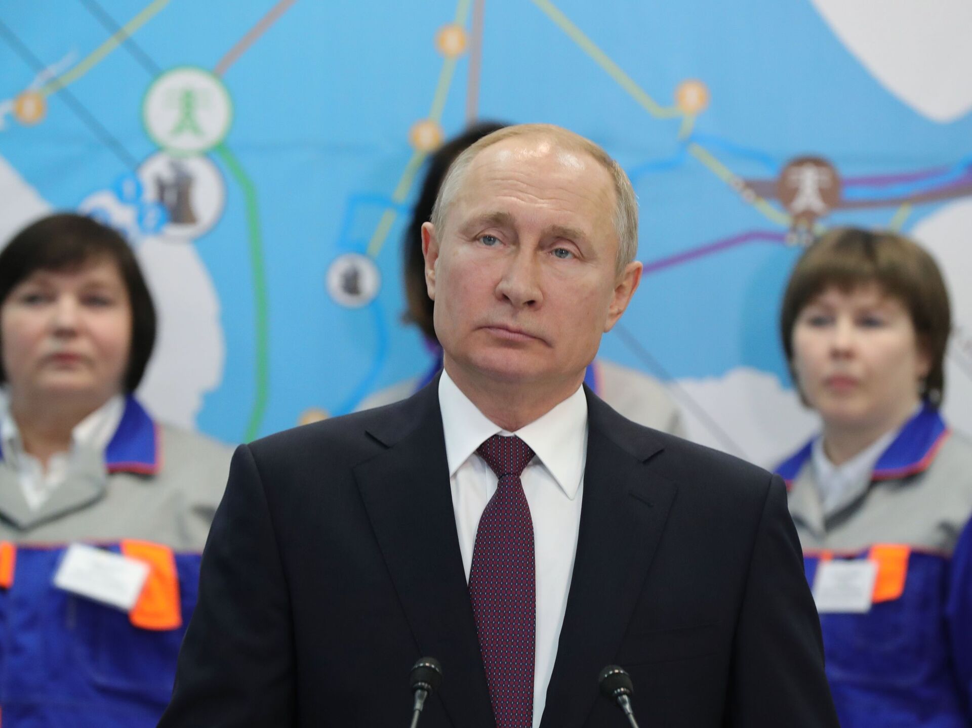 © Sputnik . Mikhael Klimentyev / الانتقال إلى بنك الصورزيارة الرئيس فلاديمير بوتين إلى القرم - محطة توليد الطاقة الحرارية "بالاكلافسكايا" ، 18 مارس/ آذار 2019