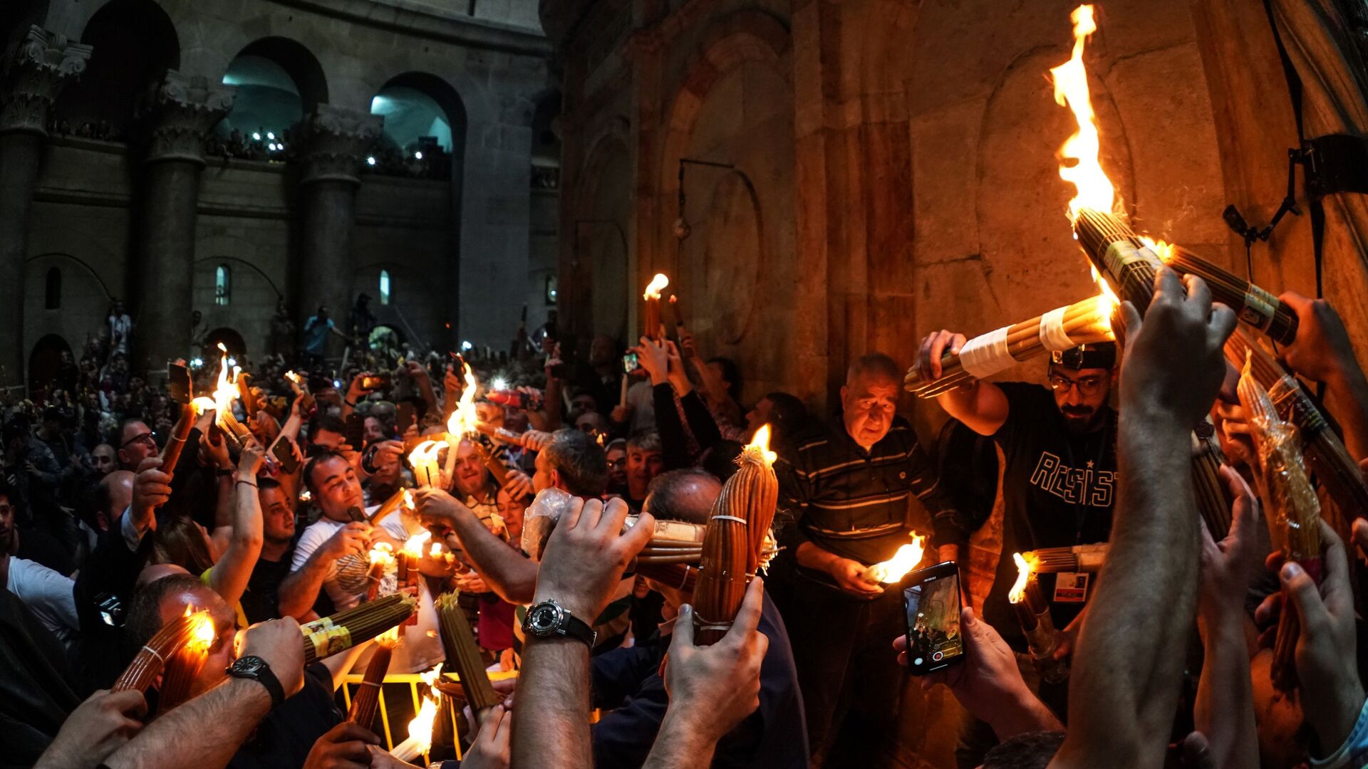 يحتفل مسحيو الأرثذوكس بانبثاق النار المقدسة في كنيسة القيامة في القدس، 27 أبريل 2019 - سبوتنيك عربي, 1920, 19.04.2025