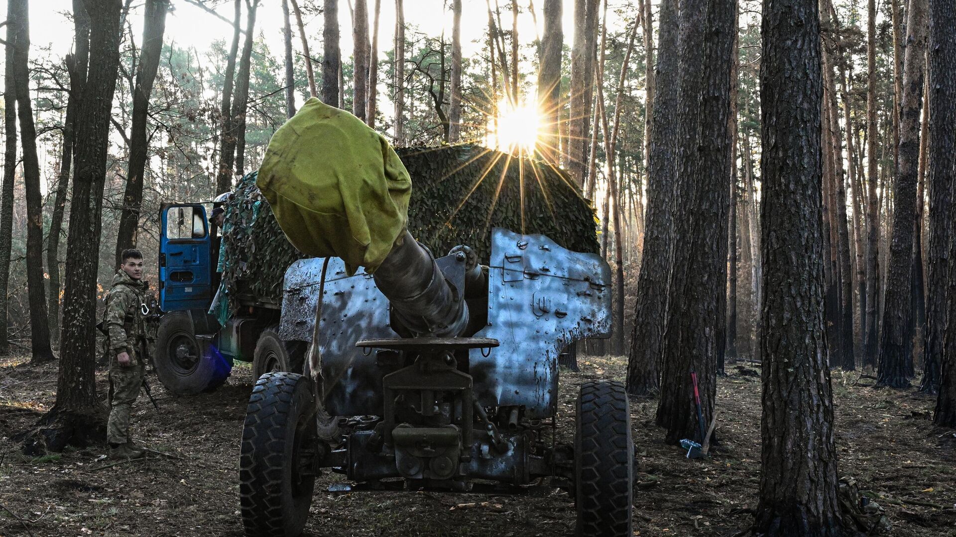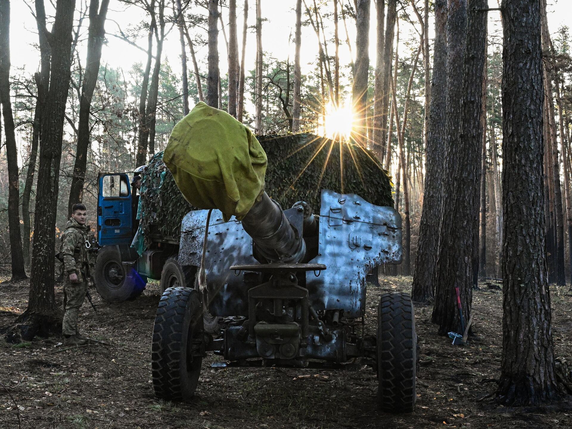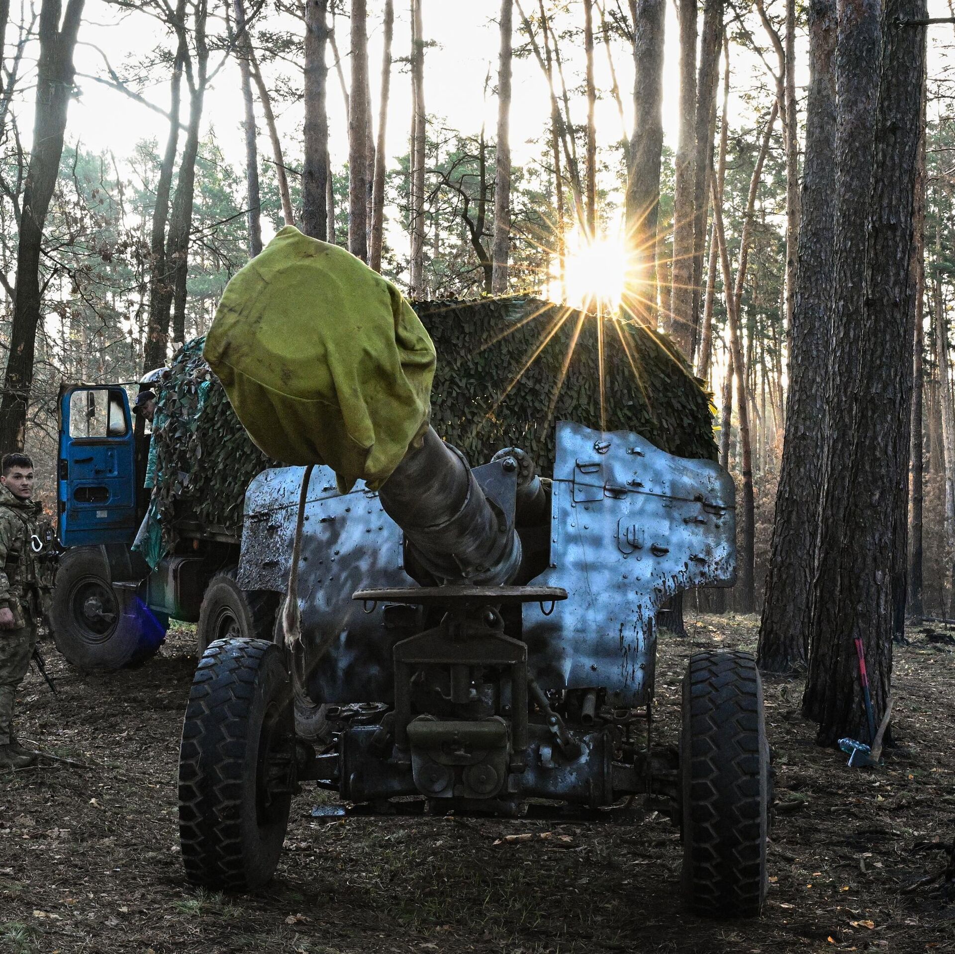 © Sputnik . Sergey Bobylev / الانتقال إلى بنك الصورمدفع هاوتزر "دي-20" التابع لفيلق المتطوعين في كتيبة القوات الخاصة المنفصلة "أربات" في مقاطعة كورسك