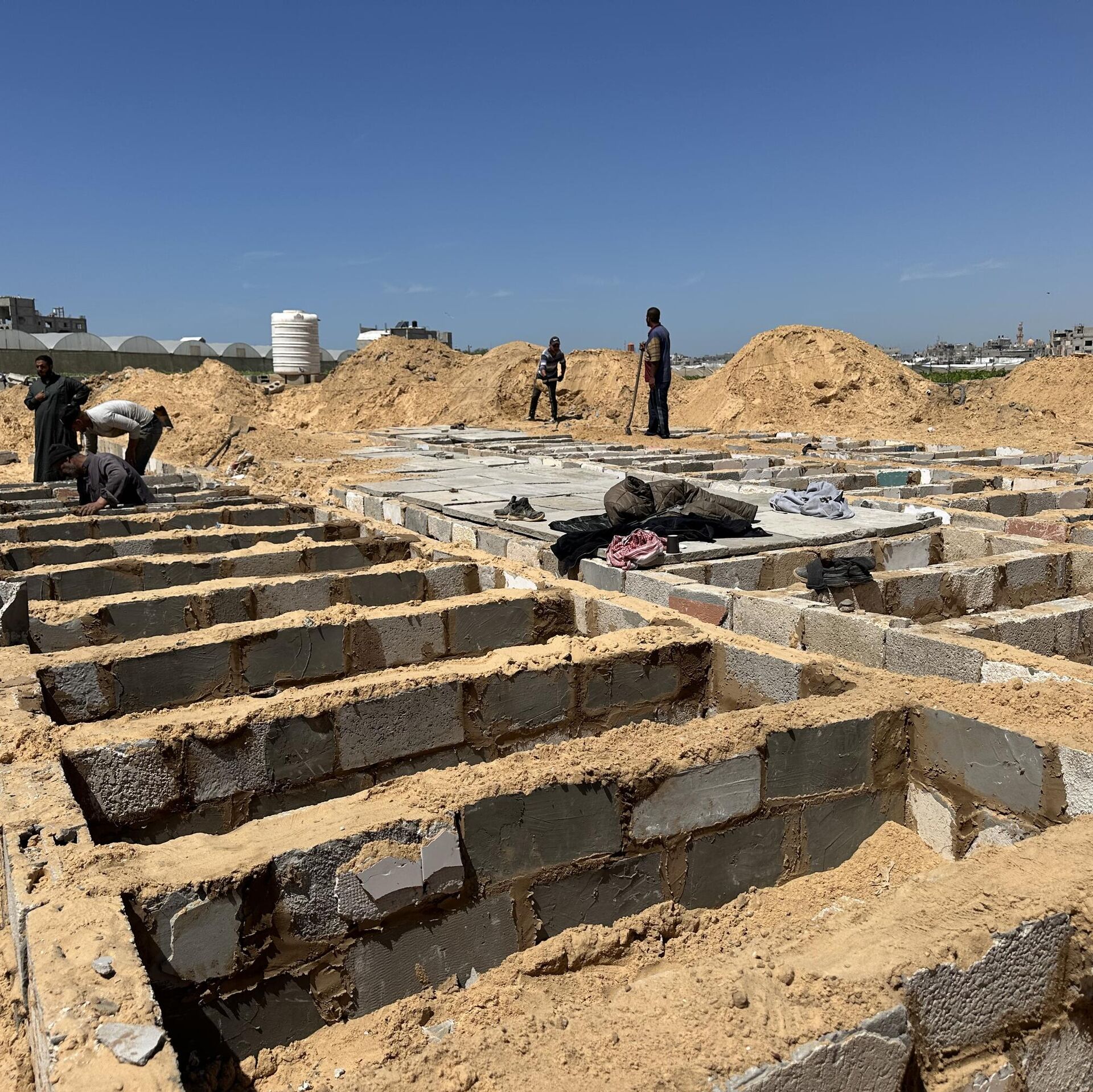 وقد بادر النازح هاني أبو القاسم ومجموعة من المتطوعين لبناء قبور مجانية في مواصي خان يونس جنوبي القطاع، لمساعدة الناس على دفن موتاهم، دون تحمل تكاليف الدفن.