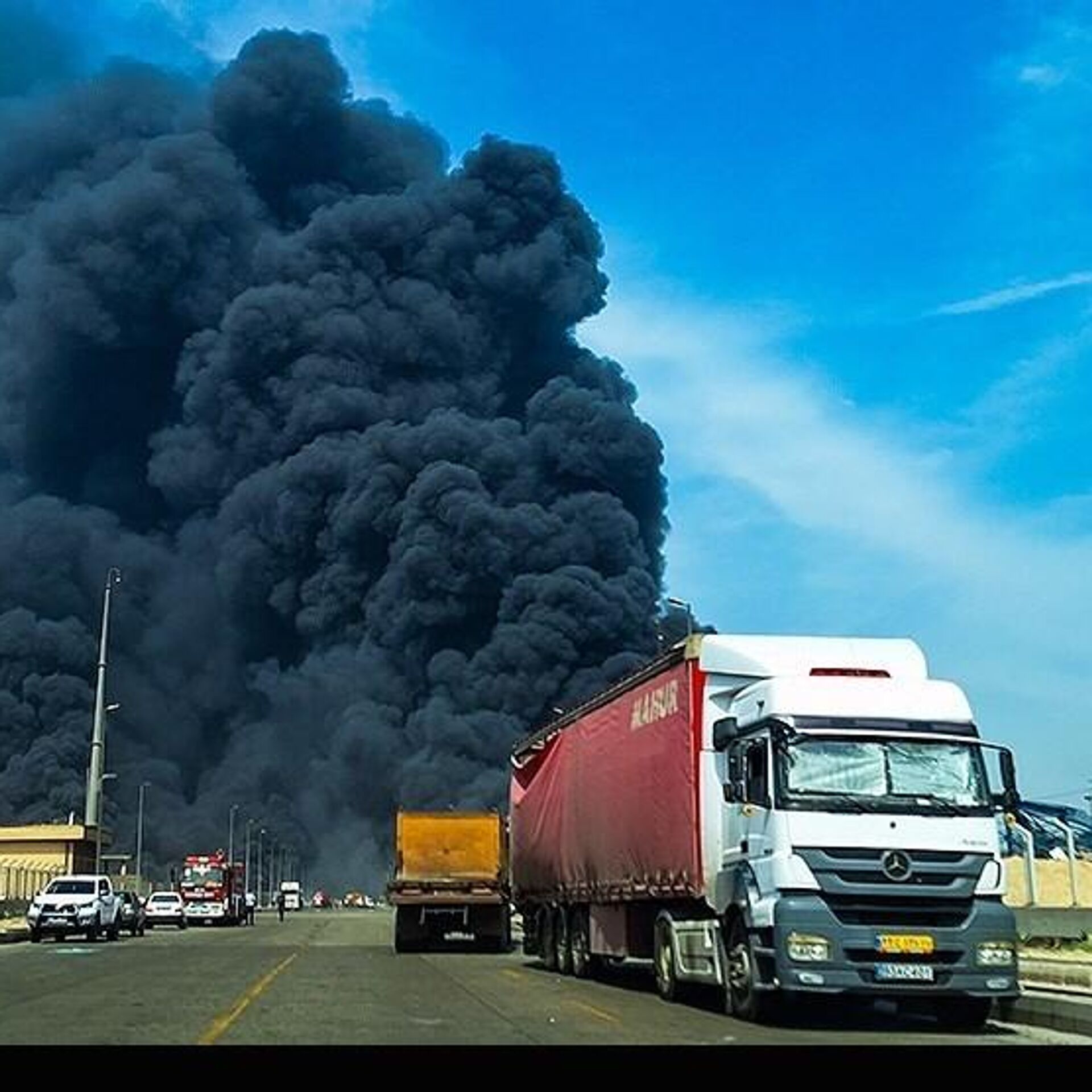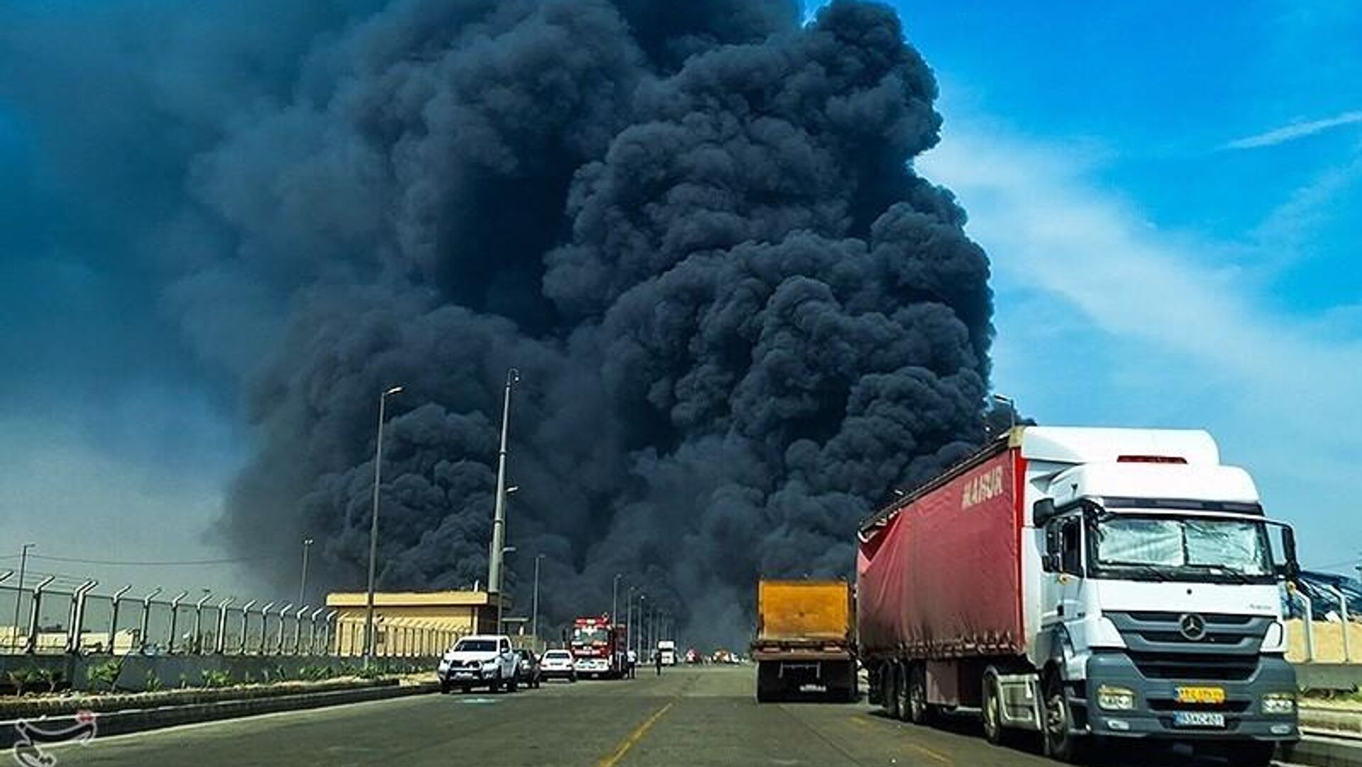 مواطنون يهربون من دائرة الخطر بعد انجار ميناء رجائي في إيران.