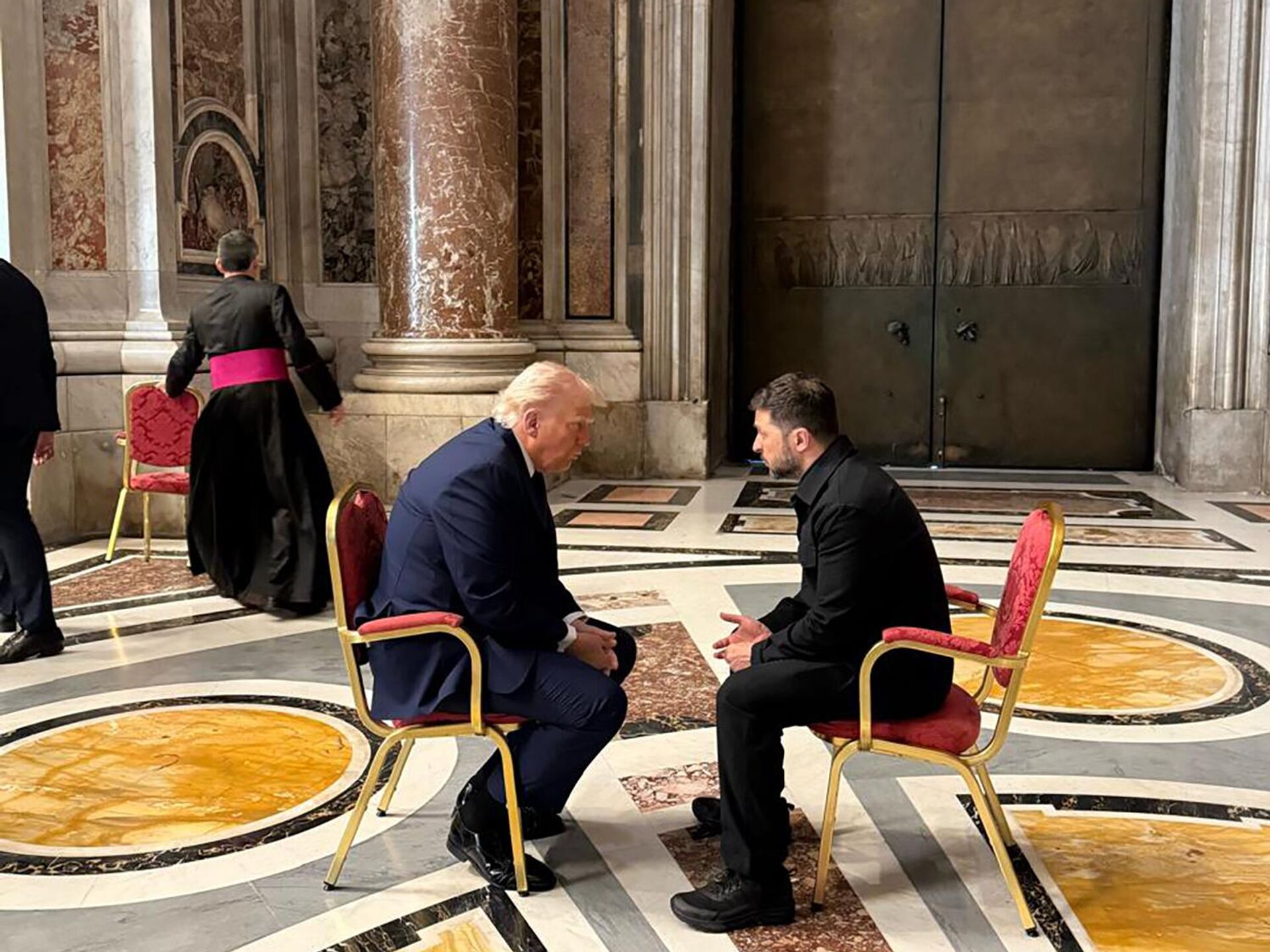 © AP Photo ترامب يلتقي زيلينسكي قبل وقت قصير من حضور جنازة البابا فرانسيس في الفاتيكان