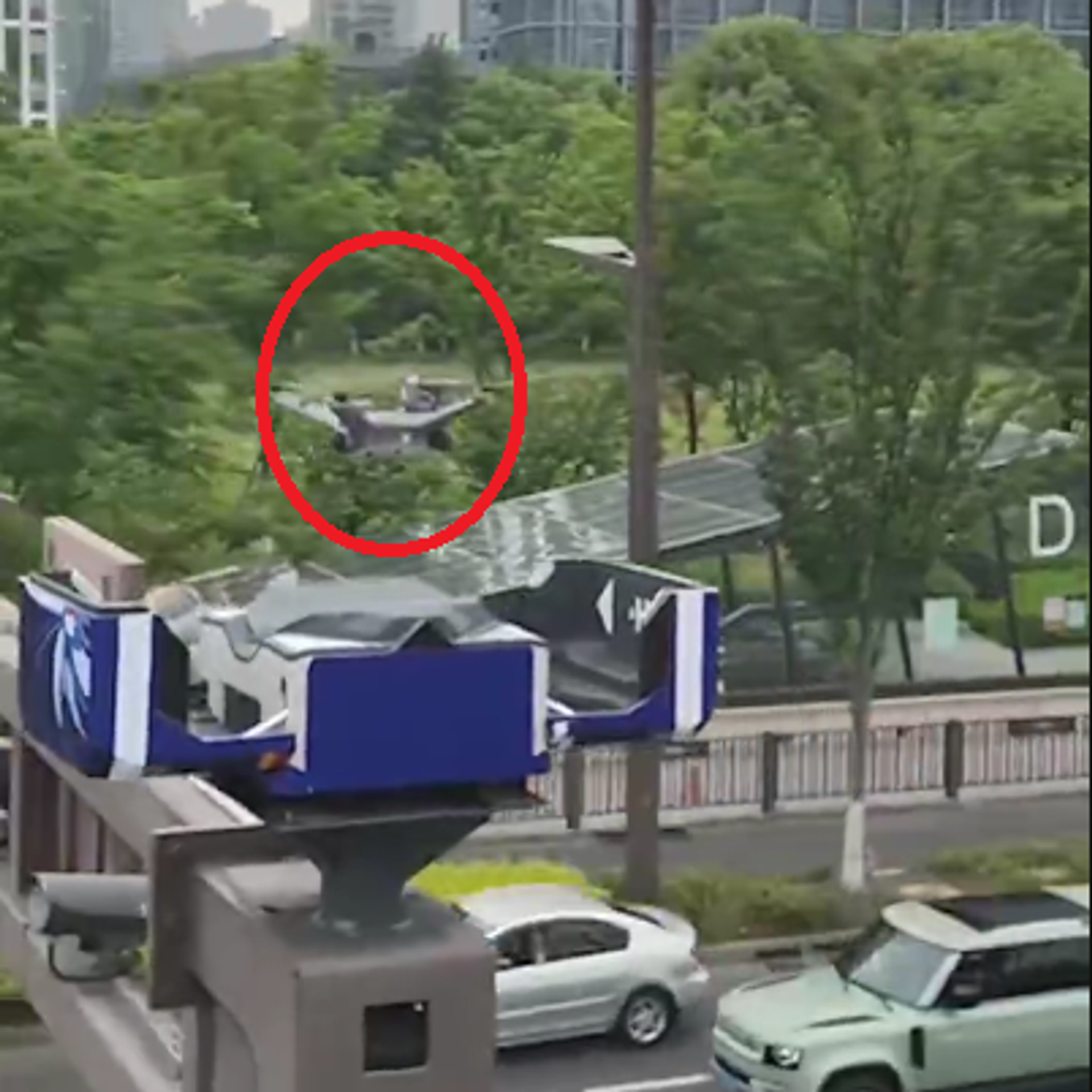 ويظهر في الفيديو منصات إقلاع وهبوط صغيرة للطائرات دون طيار مزودة بتقنيات متقدمة لتشغيل المسيرات بسلاسة، مثبتة على أعمدة إشارات المرور،