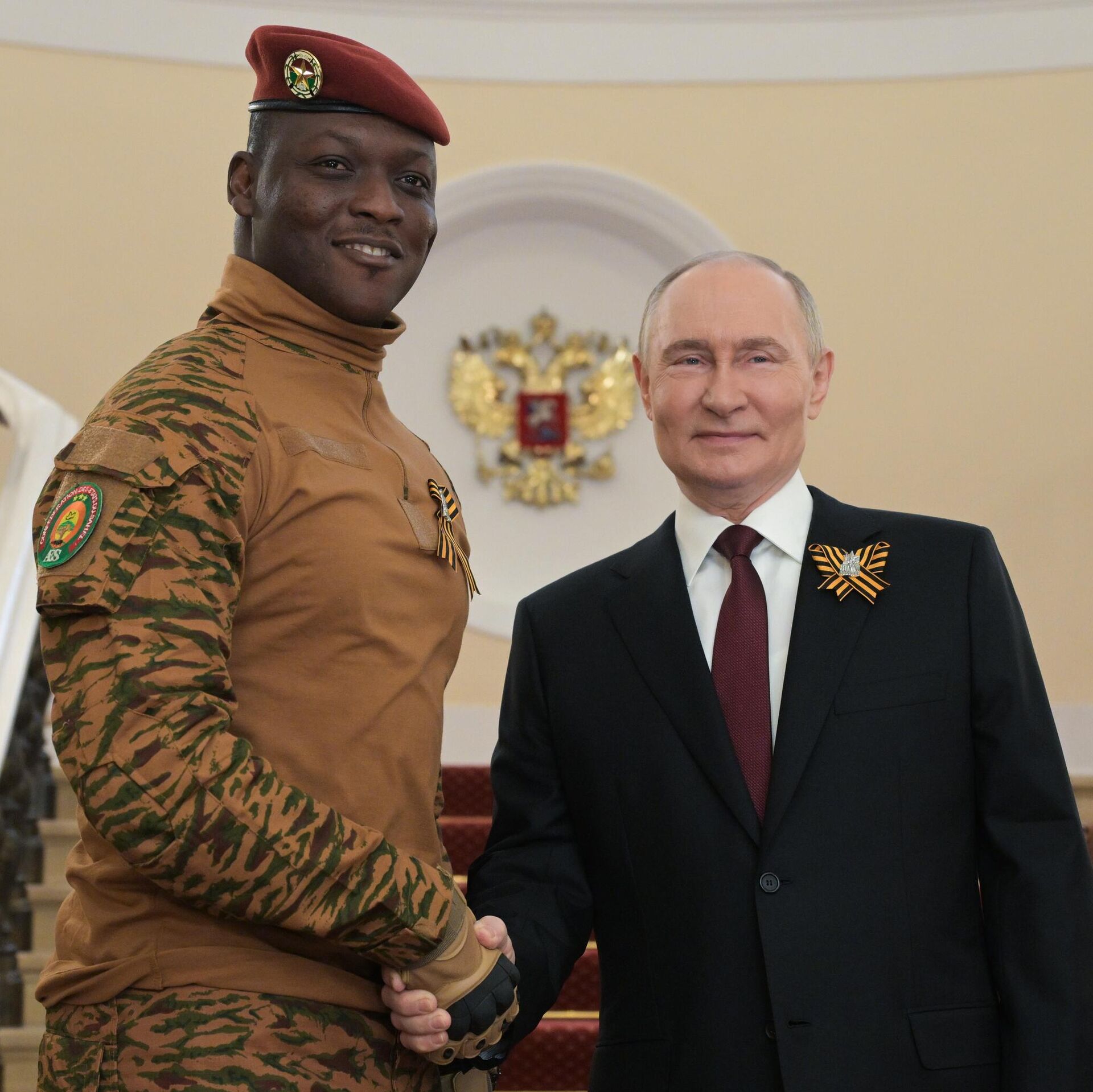وصل رئيس بوركينا فاسو إلى موسكو في 8 مايو/ أيار الجاري، للمشاركة في فعاليات الذكرى الثمانين للنصر في الحرب الوطنية العظمى. وحضر يوم الجمعة عرض النصر في الساحة الحمراء.