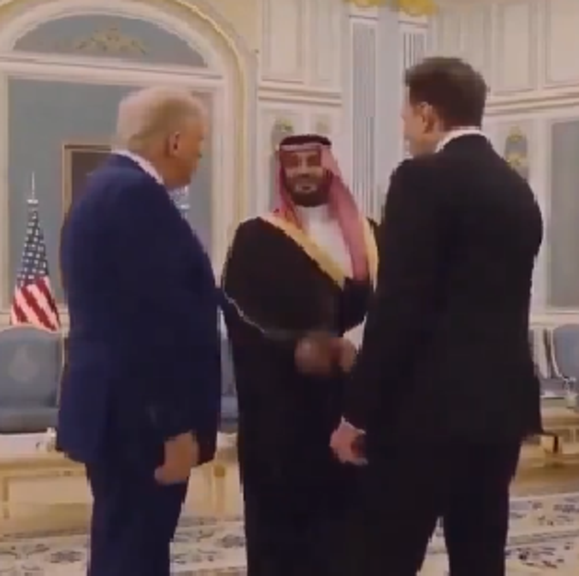 خلال مراسم استقبال الرئيس الأمريكي دونالد ترامب في الرياض، صافح ماسك ولي العهد السعودي، الذي كان واقفا إلى جانب الرئيس ترامب، في لحظة لفتت الأنظار ضمن اللقاء الرسمي.