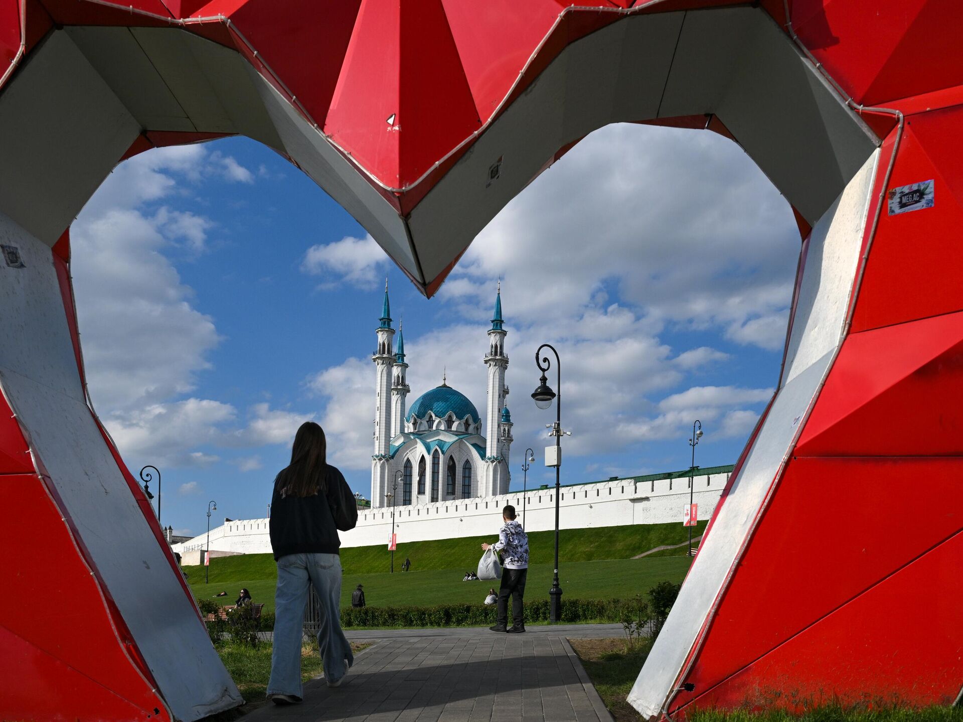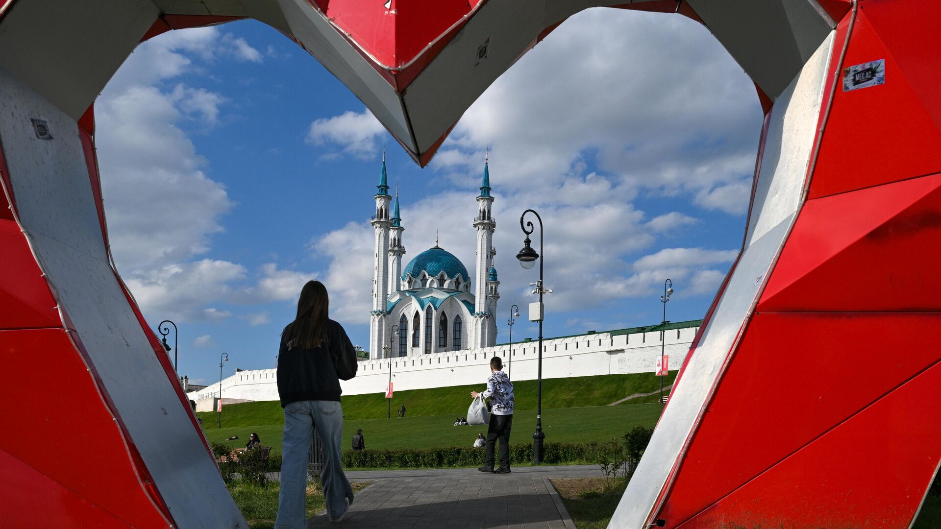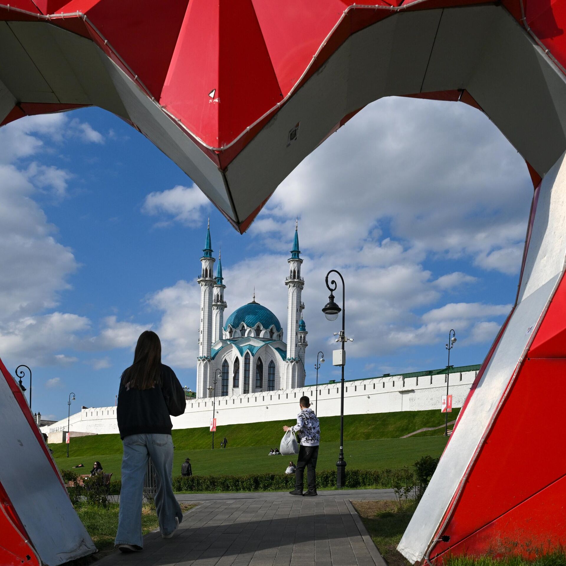 زوار يسترخون بالقرب من الكرملين الموجود في مدينة قازان. - سبوتنيك عربي