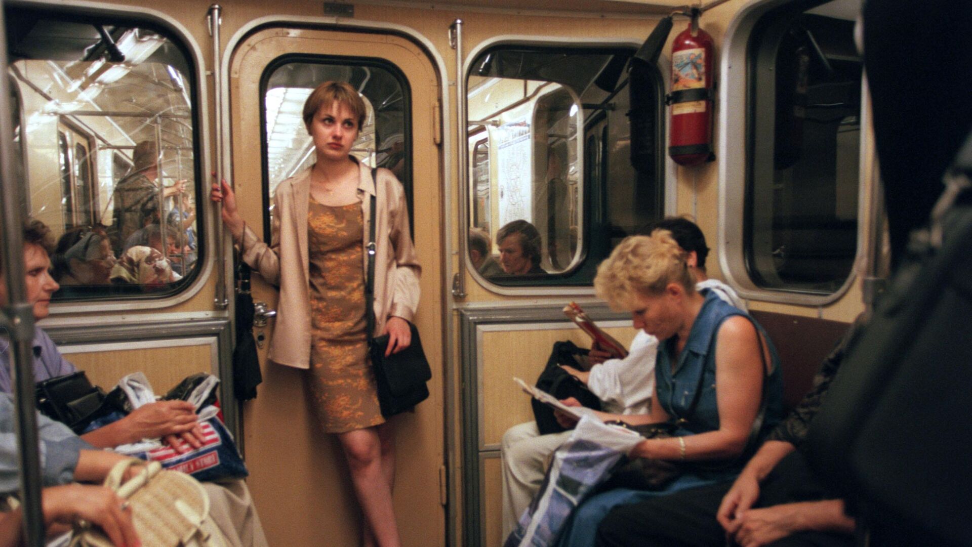 فتاة تقف في عربة قطار في مترو موسكو