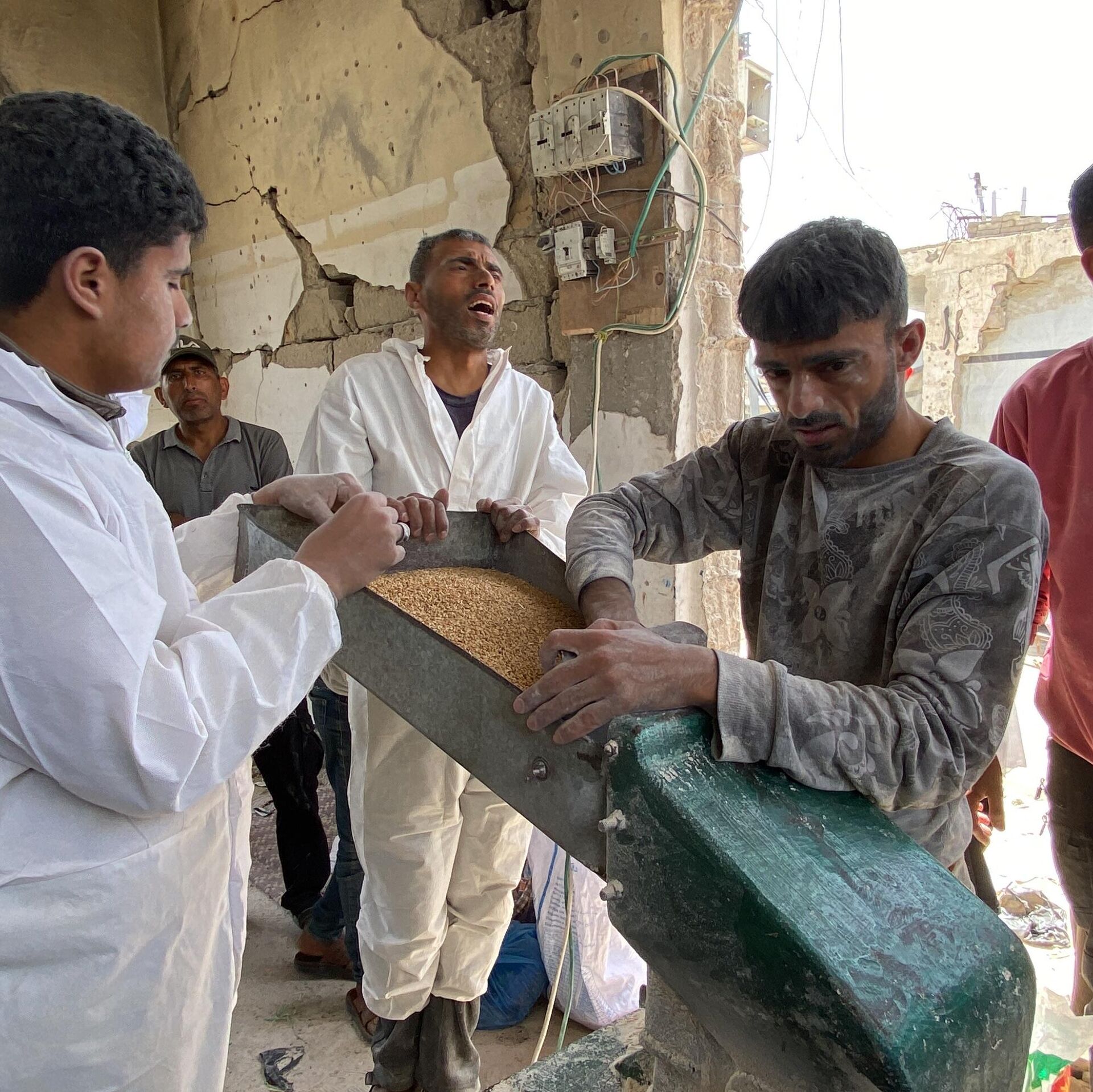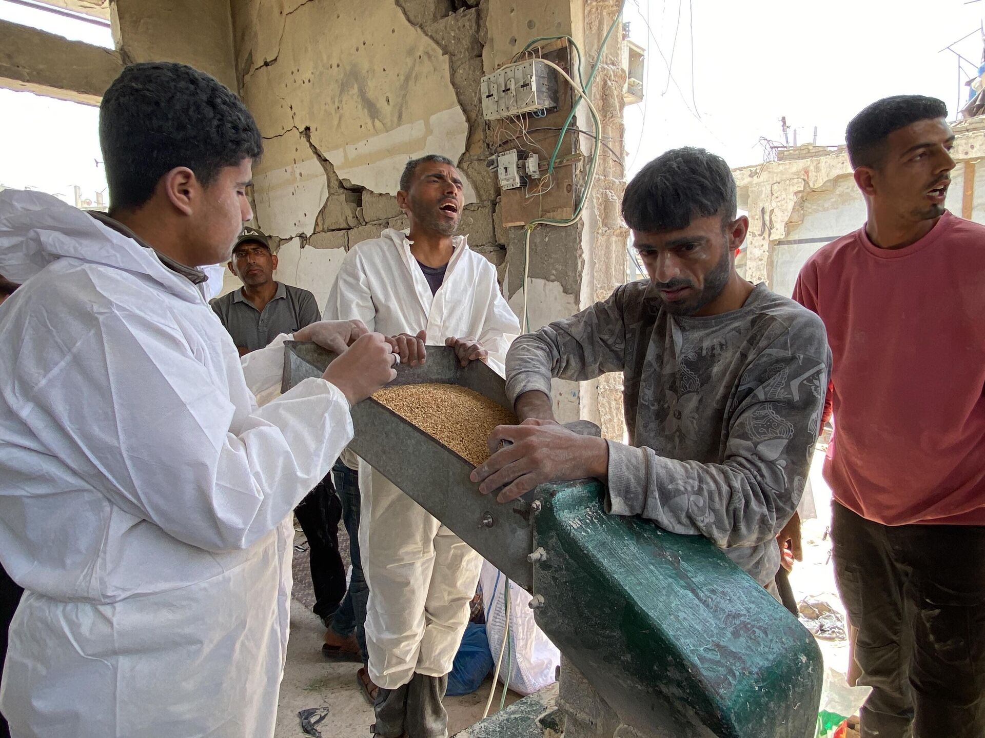 في حي بني سهيلا شرق خان يونس جنوبي قطاع غزة، بادر الشاب محمد أبو خاطر إلى طحن البقوليات للمواطنين بشكل شبه مجاني، لمساعدتهم في مواجهة أزمة الجوع المتفشية.