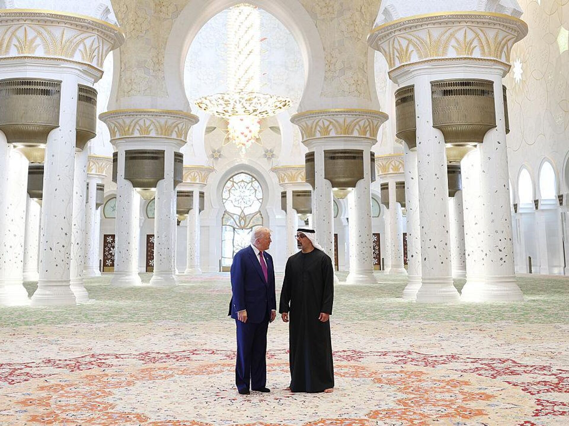 وزار ترامب مسجد الشيخ زايد الكبير، في العاصمة الإماراتية أبوظبي، خلال زيارته للإمارات، اليوم الخميس، ضمن جولة خليجية تشمل قطر والسعودية.