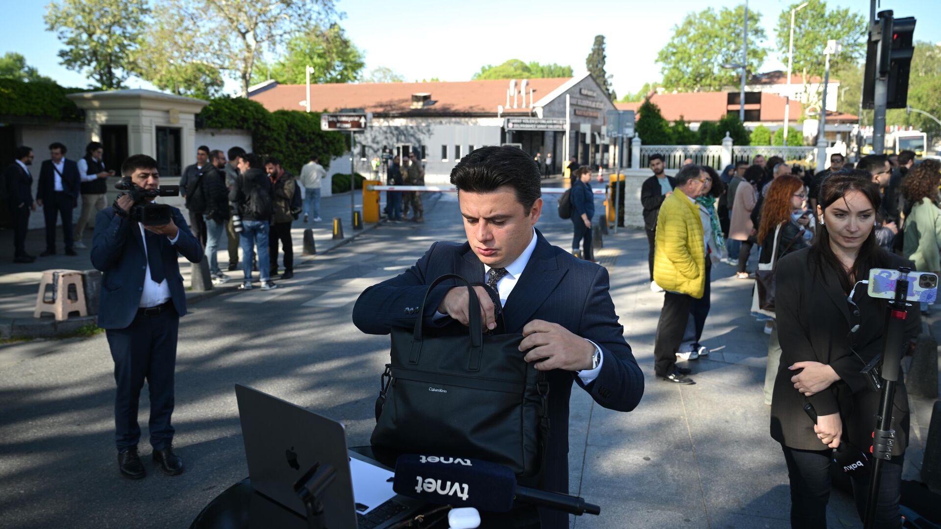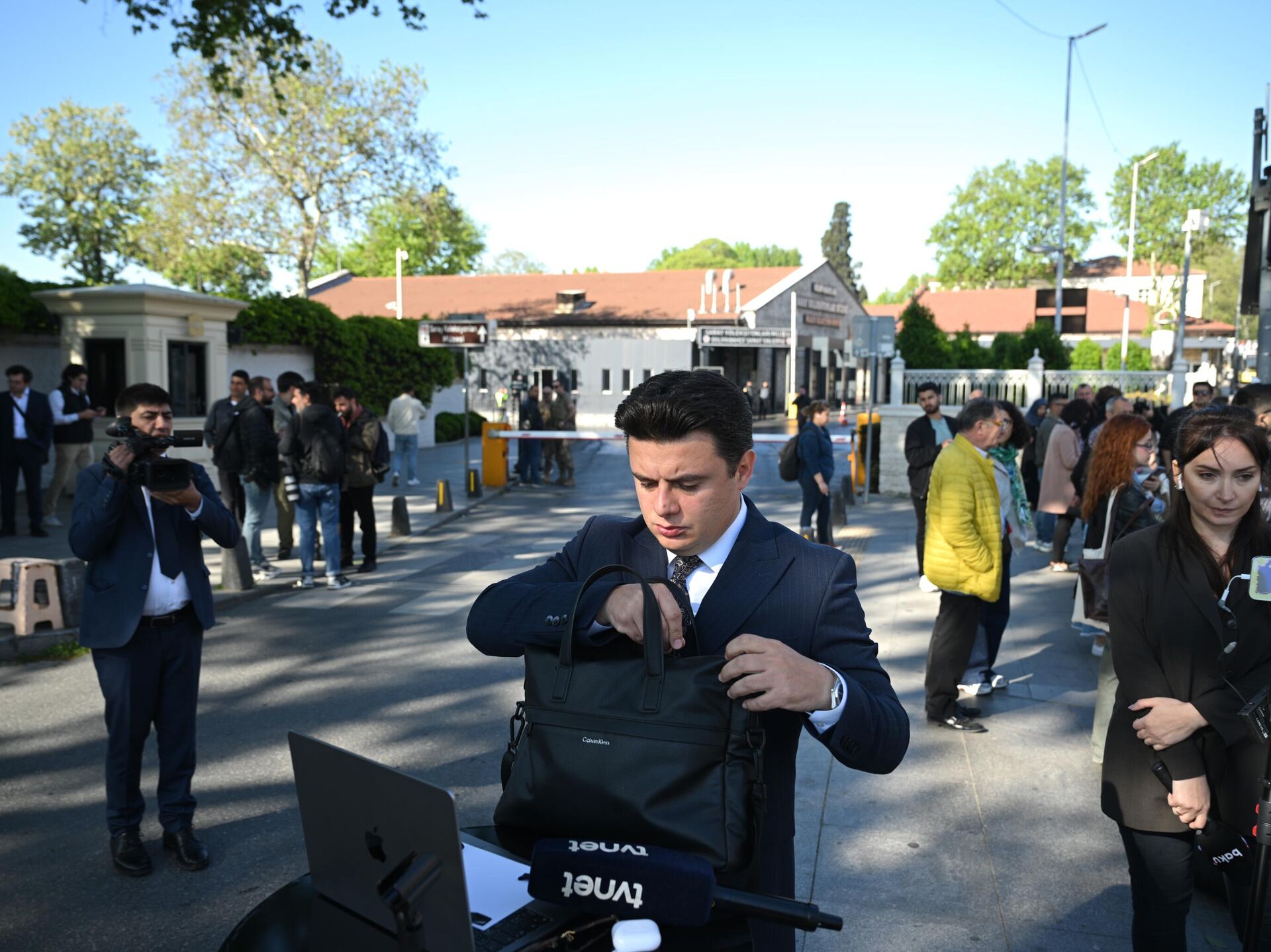 صورة أخرى توثق استعداد الصحفيين أمام قصر دولما بهجة، للتغطية الإعلامية فور بدء المحادثات. - سبوتنيك عربي