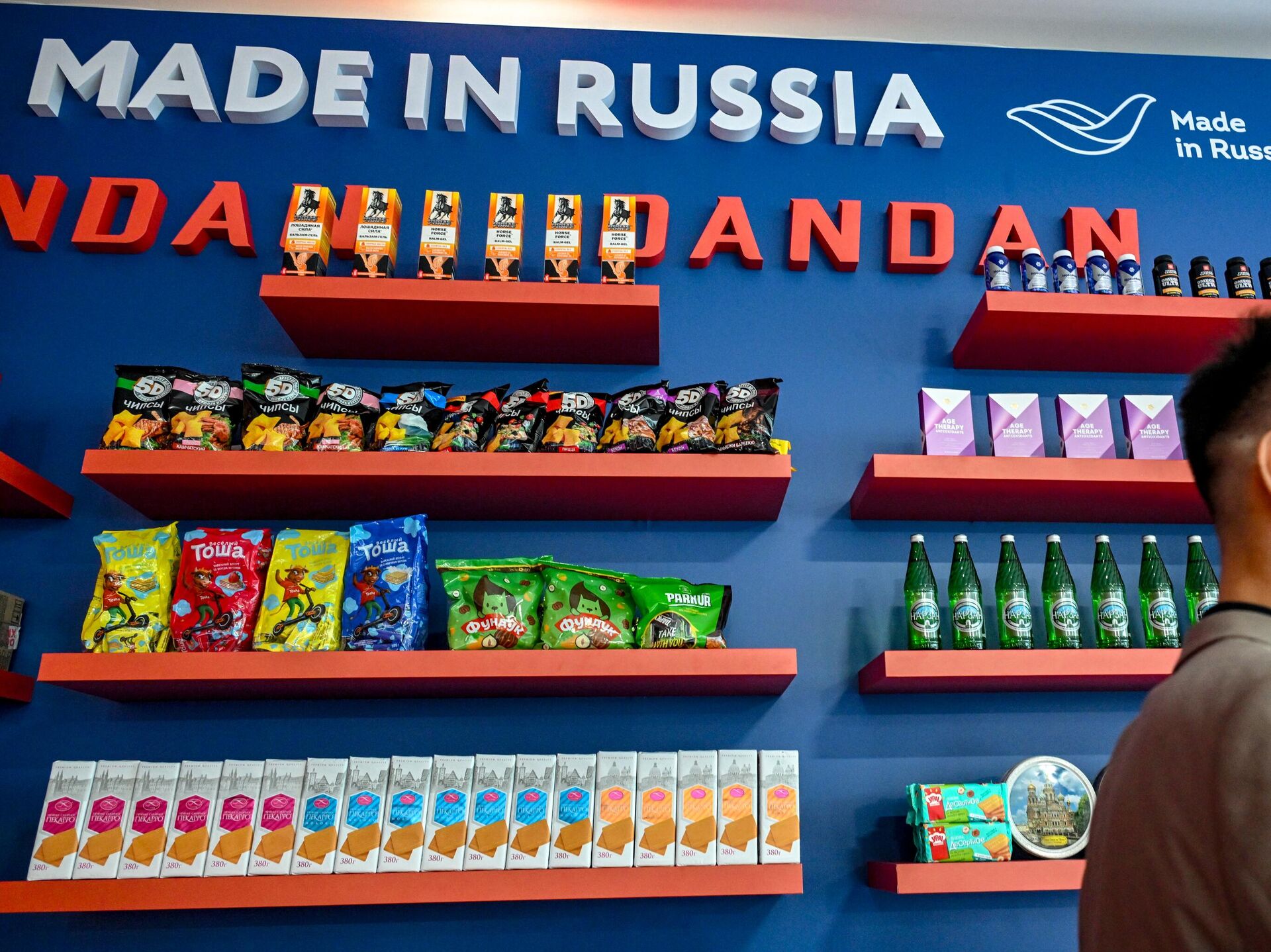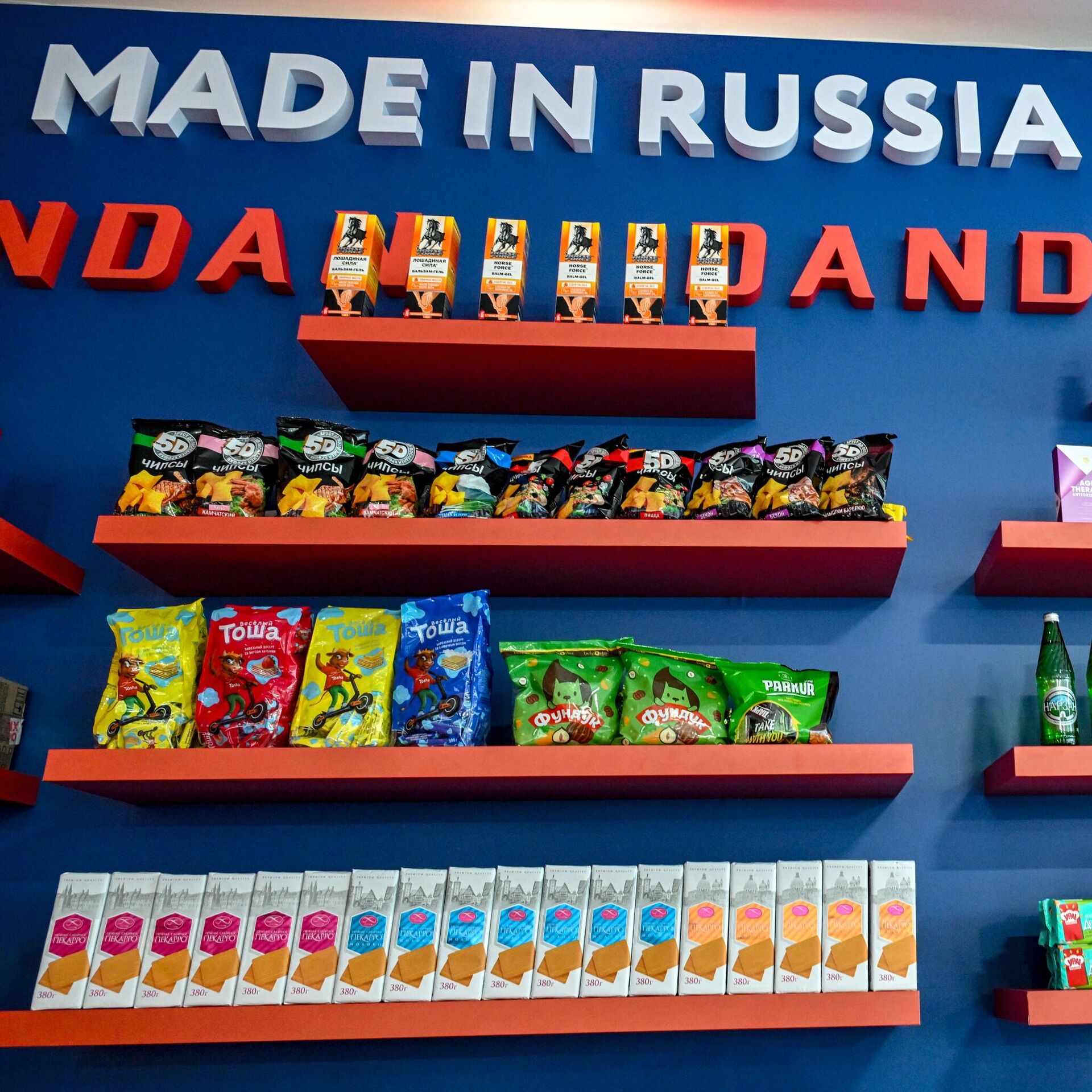 بعض المنتجات الروسية في معرض "صنع في روسيا" الدولي للمبيعات عبر الإنترنت للعلامات التجارية الروسية، في حديقة "زارياديه" في موسكو