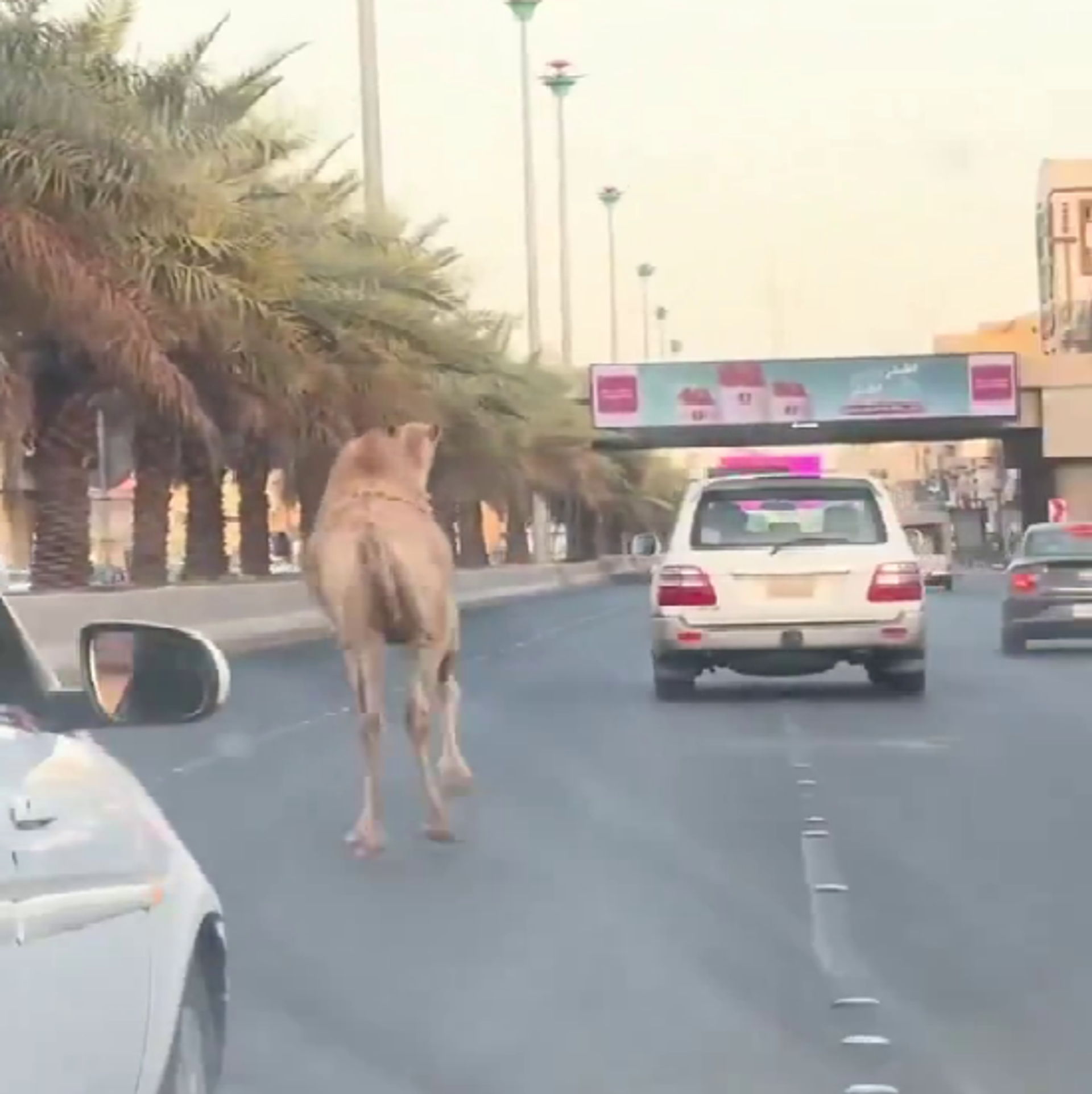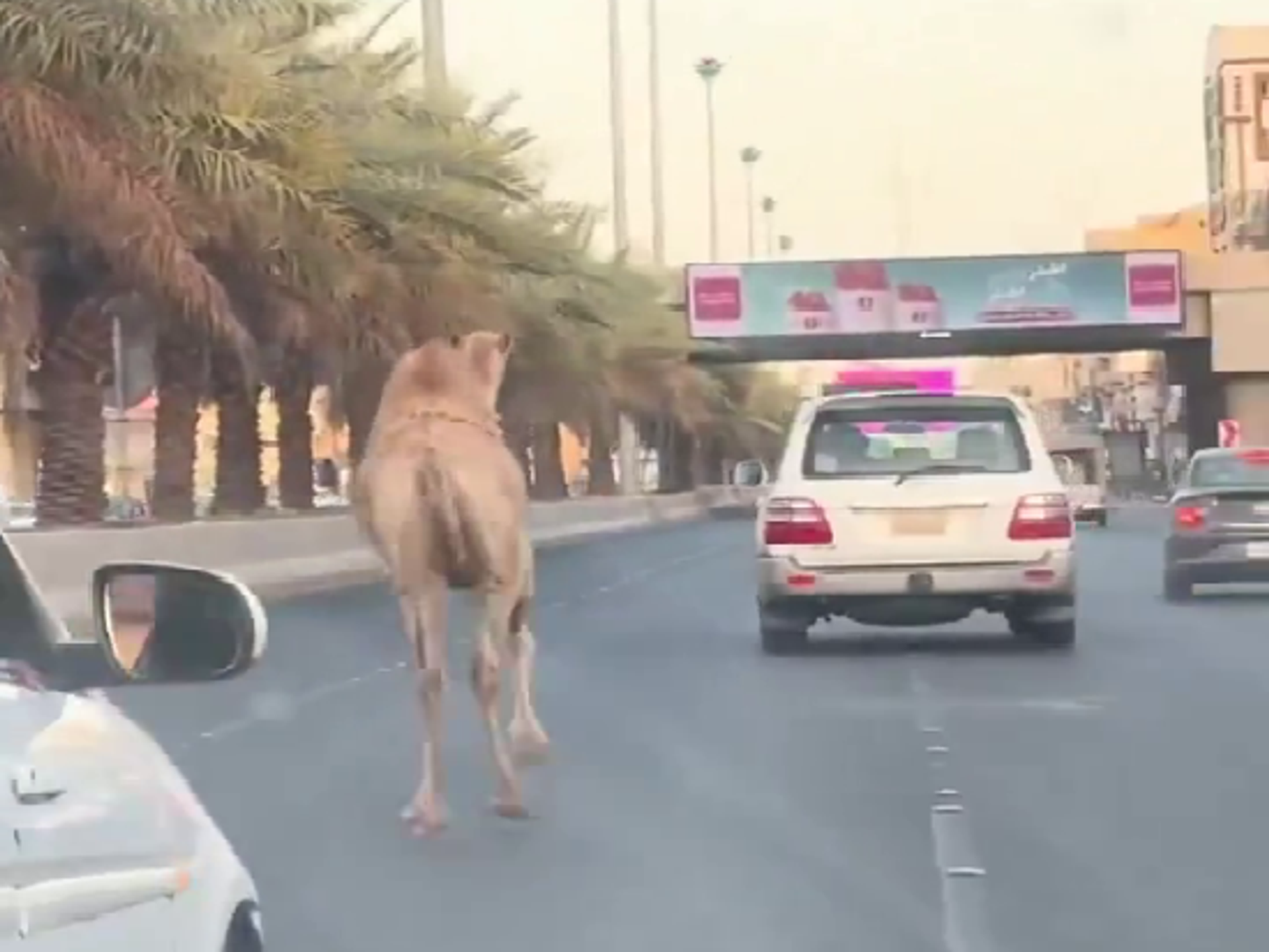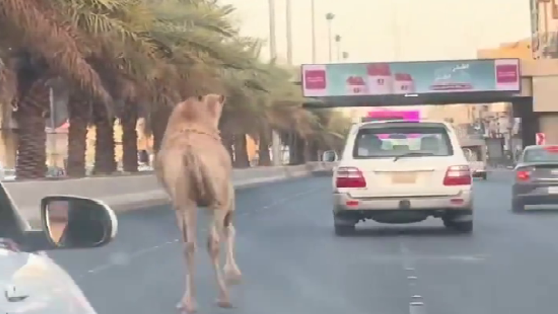 جمل هارب يتجول بين السيارات على أحد الطرق في السعودية... فيديو